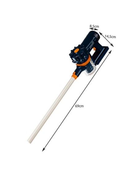 2 in 1 - pristatomas dulkiu siurblys turi nuimamą centrini bloką, todėl bet kada vaikas gali ji pakeisti i rankini dulkiu siurblį. Tai bus naudinga valant lėlių loveles ar vežimėlius.