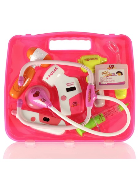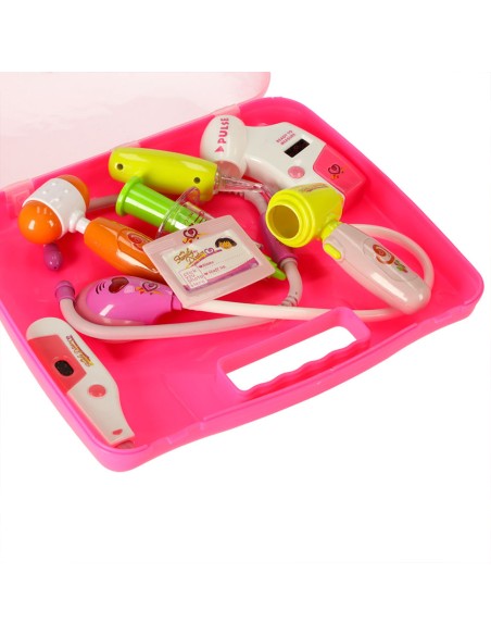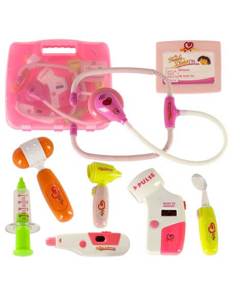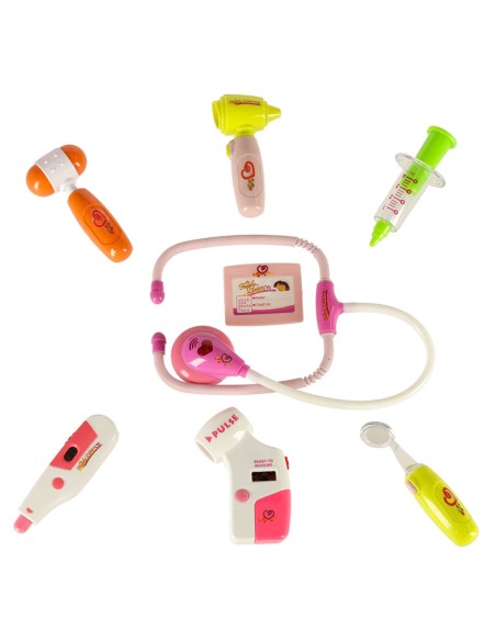 Šviesiai rožinis gydytojo rinkinys su garso ir šviesos efektais! Padeda įveikti baimę lankytis pas gydytoją ir lavina vaizduotę. Puiki dovana!
