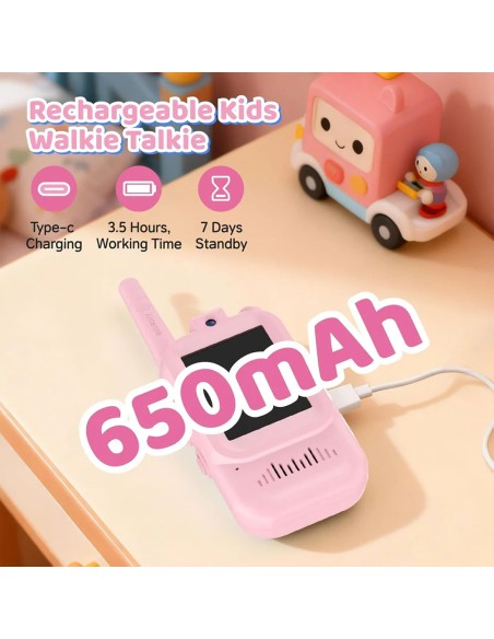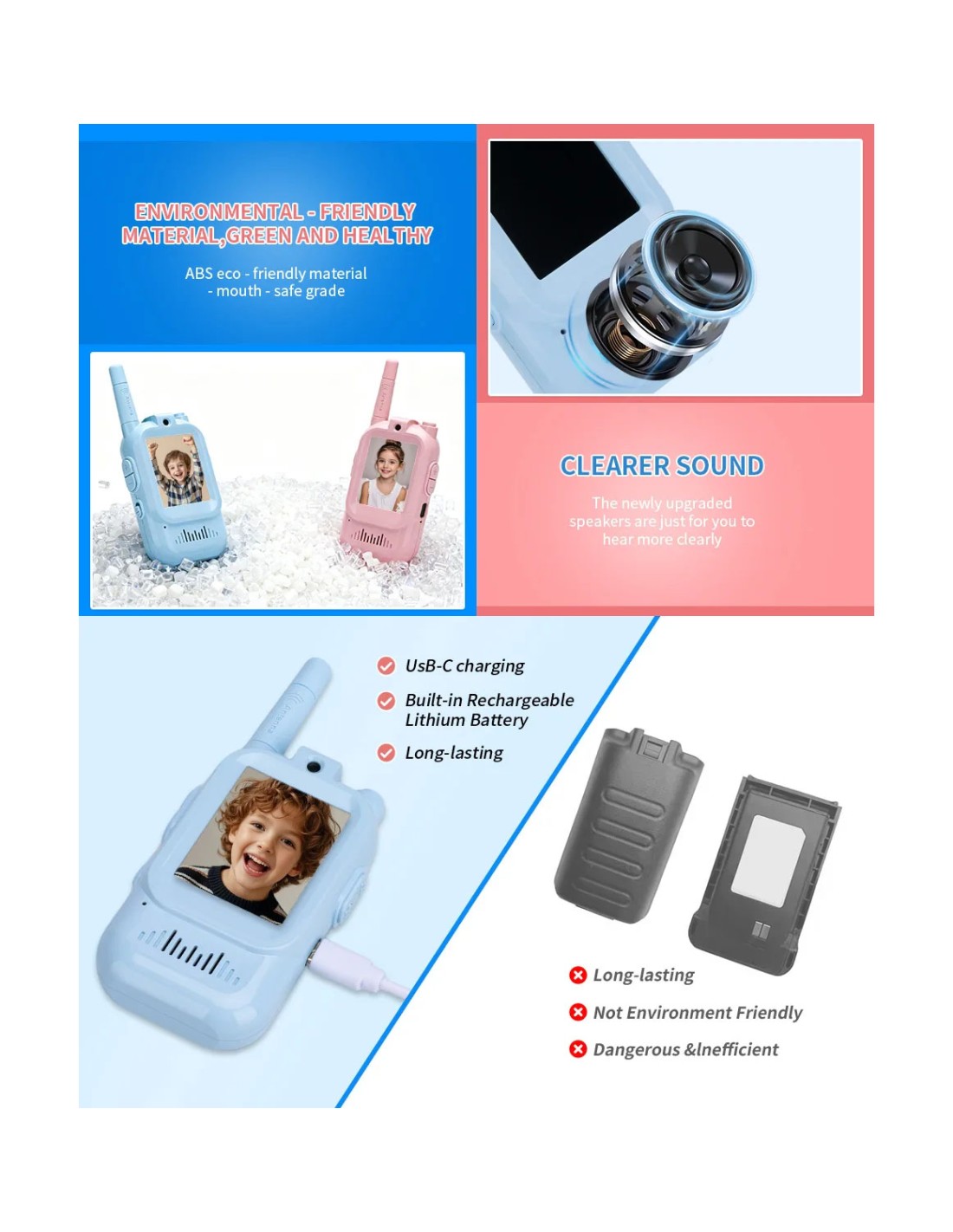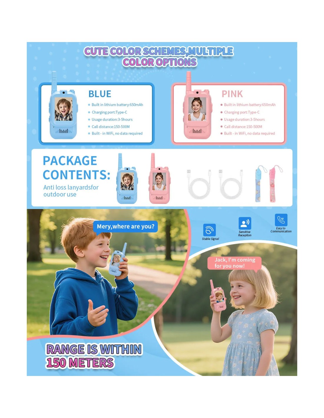 Pakylėkite vaikiškus žaidimus į naują lygį! Šios modernios vaizdo racijos leidžia ne tik girdėti, bet ir matyti savo pašnekovą spalvotame ekrane. Tai puikus įrankis mažiesiems tyrinėtojams, norintiems palaikyti ryšį stovyklaujant, žaidžiant slėpynes ar bendraujant tarp skirtingų kambarių.