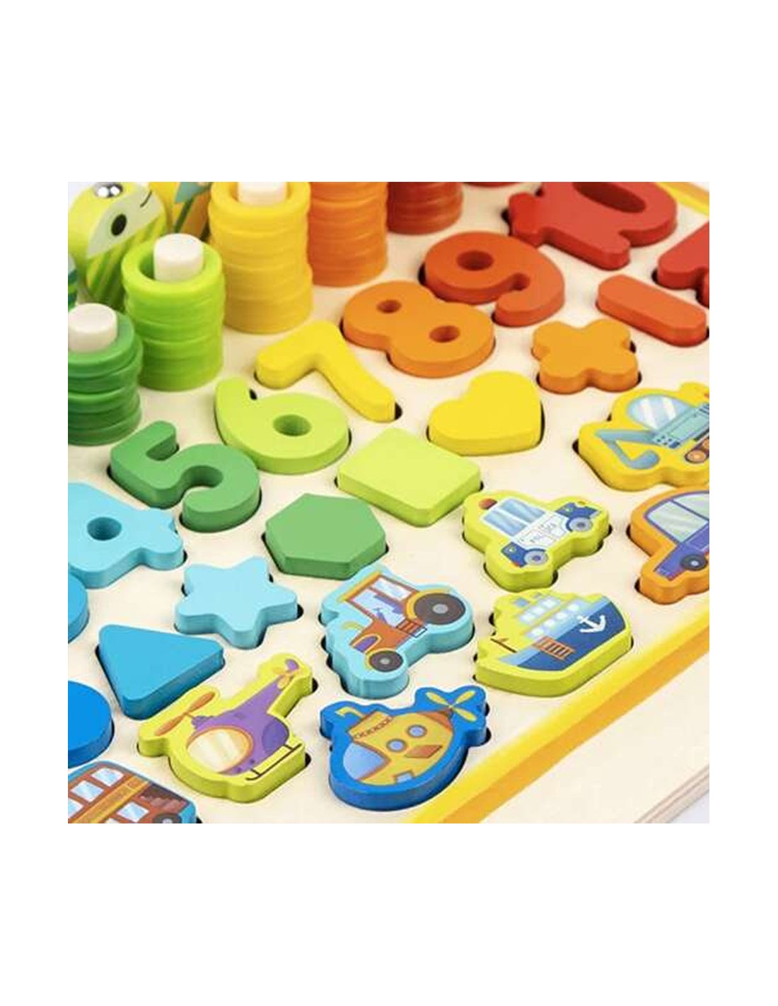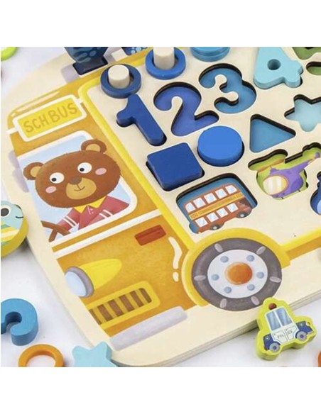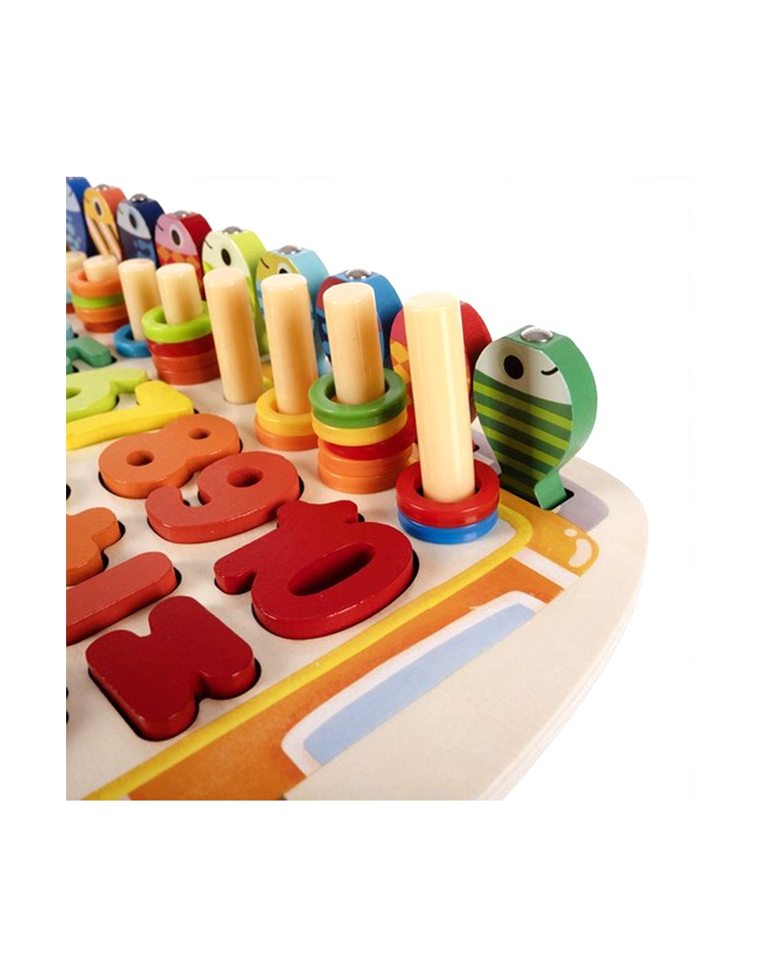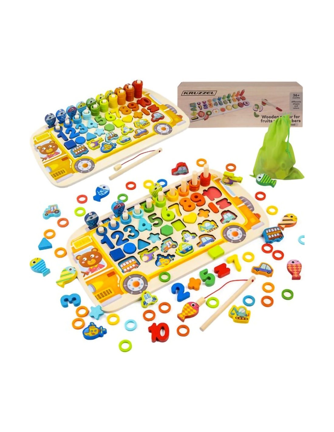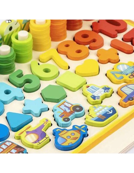 Lavinkite savo vaiko įgūdžius su šiuo "5 viename" mediniu Montessori žaislu! Dėlionė, žvejyba, matematika ir dar daugiau! Puiki dovana nuo 3 metų.