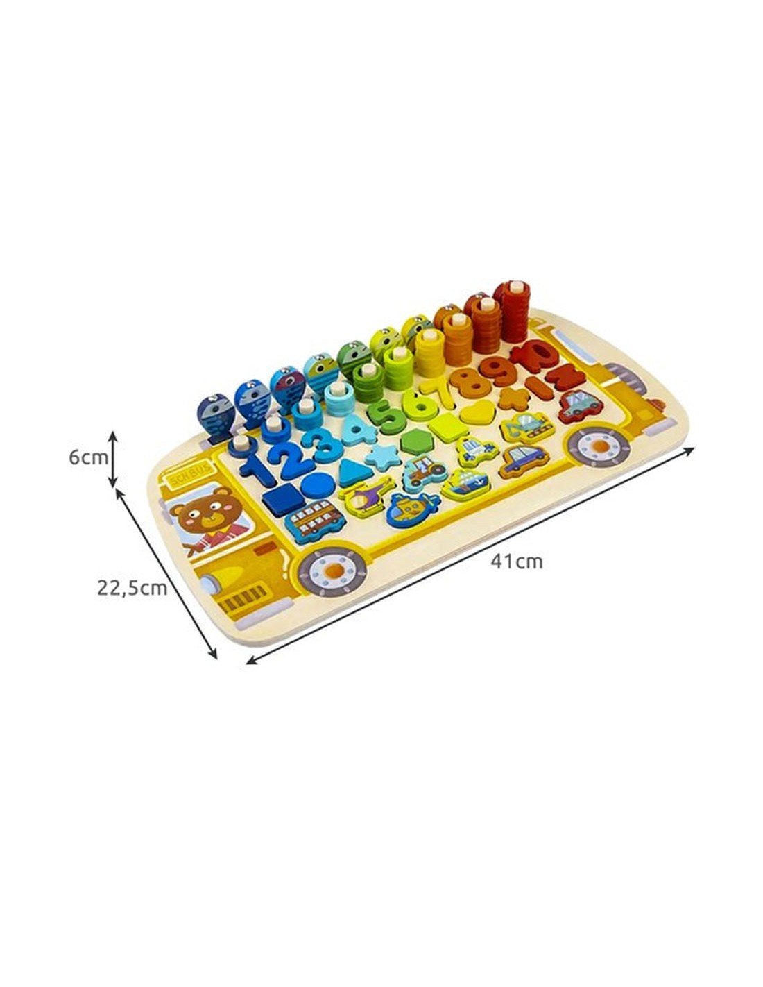 Supažindinkite savo vaiką su skaičiais, formomis ir spalvomis žaidimo forma! Šis "5 viename" medinis Montessori žaislas yra puiki priemonė mažiesiems tyrinėtojams, norintiems atrasti pasaulį per žaidimą.