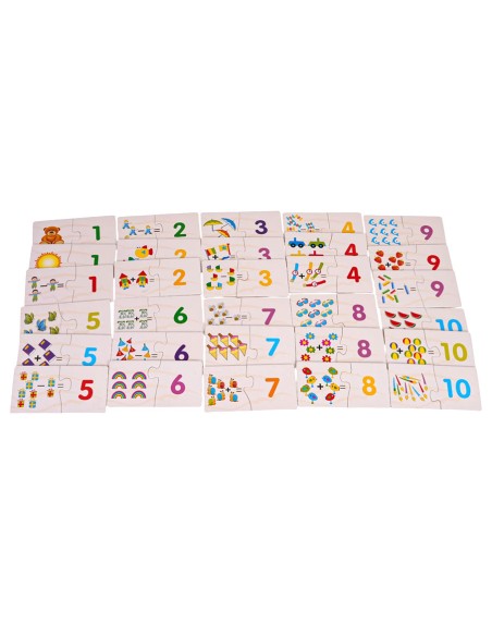 Supažindinkite savo vaiką su skaičiais ir matematiniais veiksmais žaidžiant su šiuo mokomuoju galvosūkių rinkiniu! 30 galvosūkių padės vaikams išmokti skaičiuoti, derinti figūras ir spręsti paprastus matematinius uždavinius. Ryškios spalvos ir kokybiškos medžiagos užtikrins smagų ir saugų žaidimą.