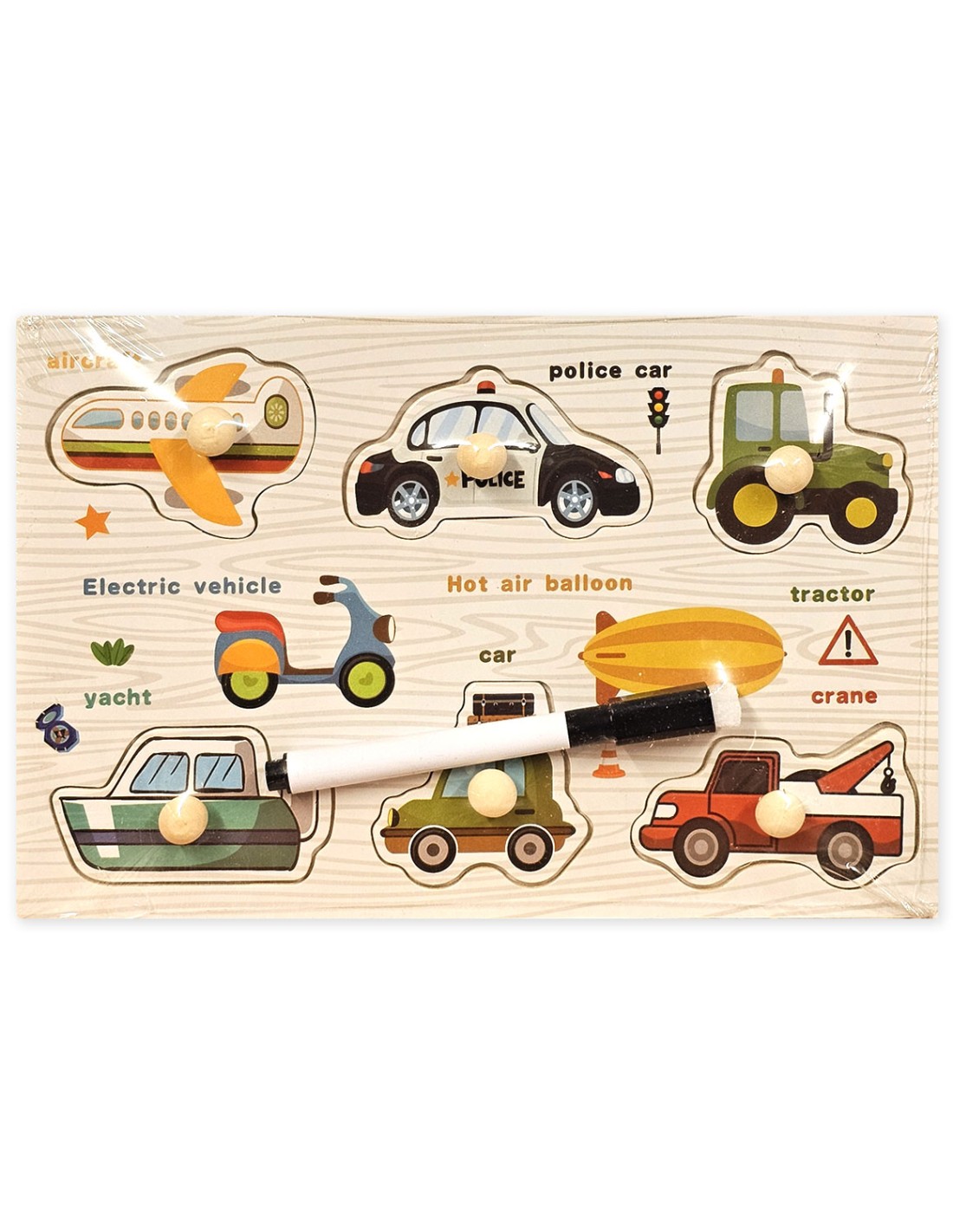 2 in 1 Nesudėtingos medinės dėlionės ir piešimo lenta - Transporto pasaulis