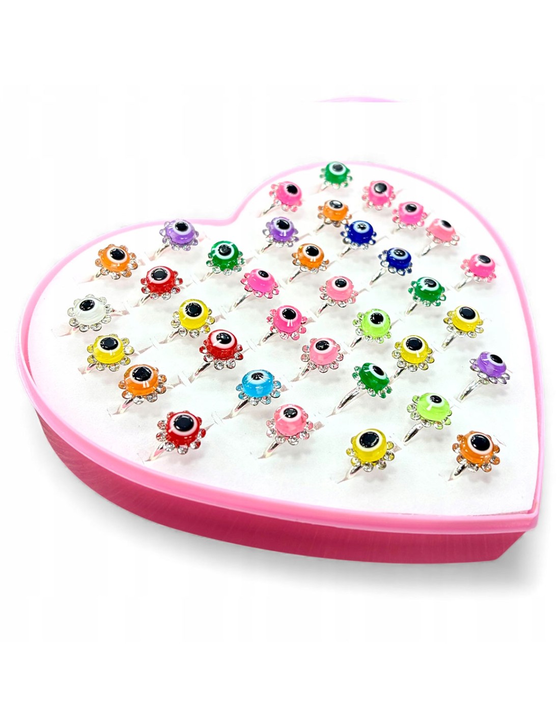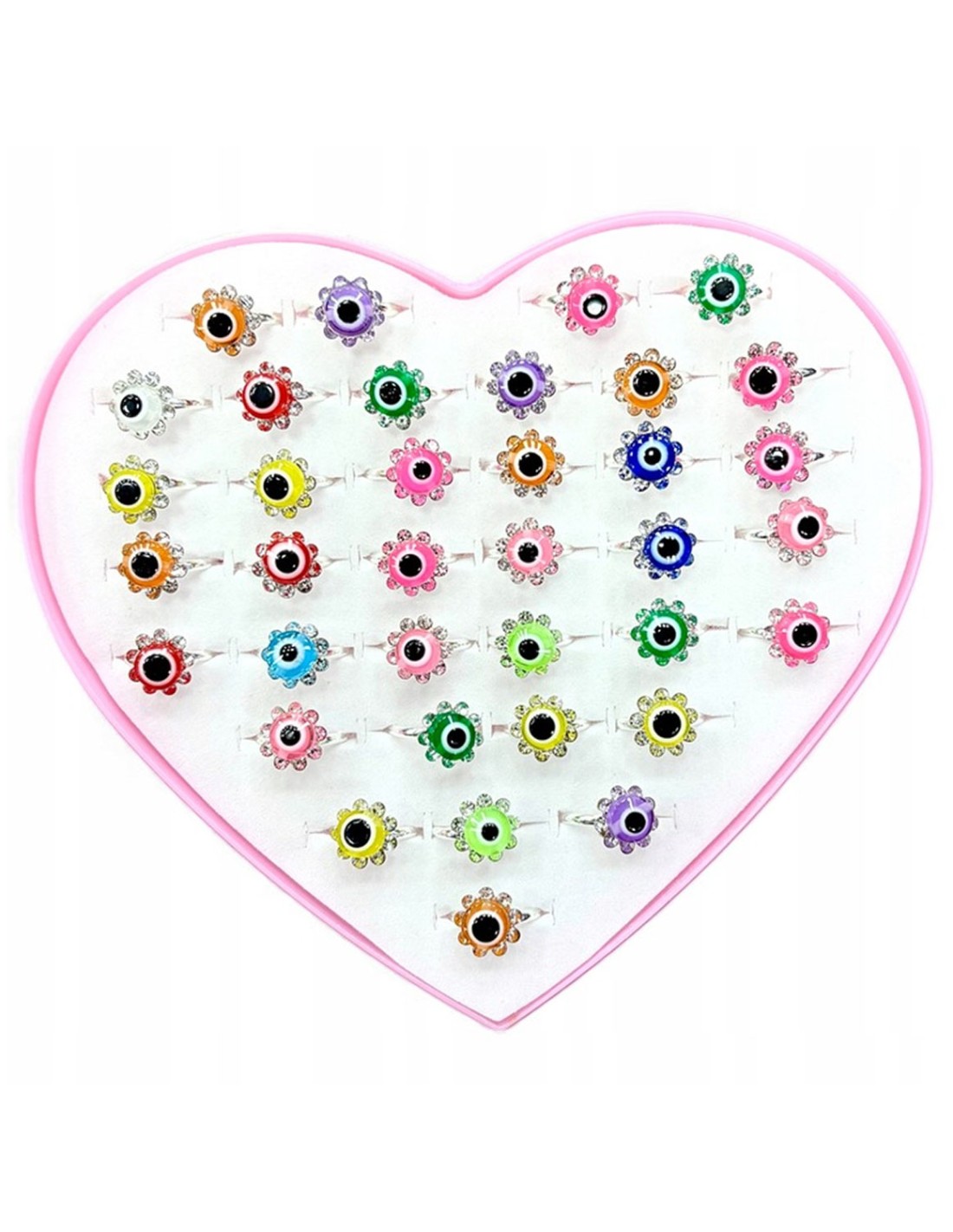 Spindintis dizainas: Kiekvienas žiedas puoštas spalvingais raštais ir elementais, kurie žaismingai spindi šviesoje.