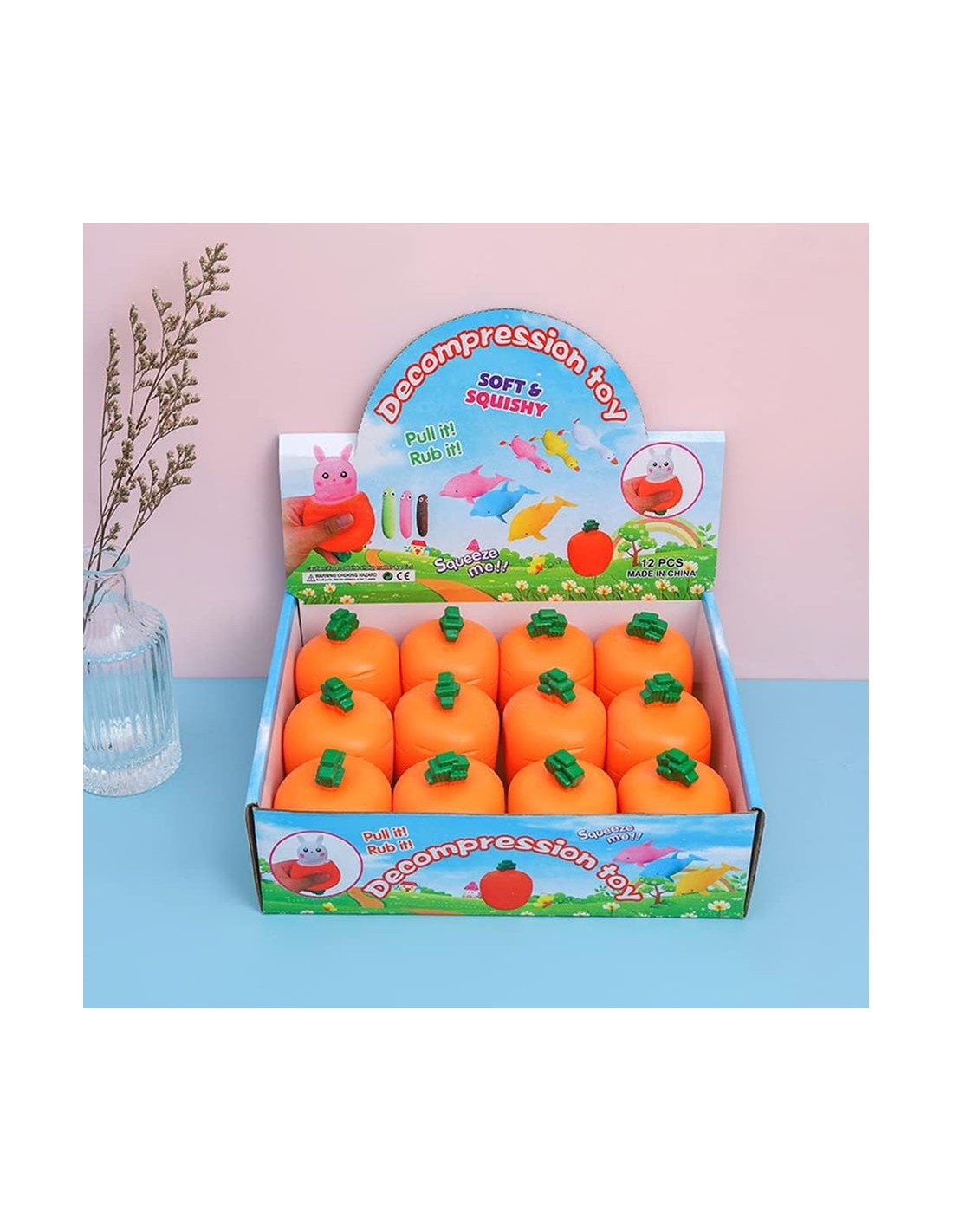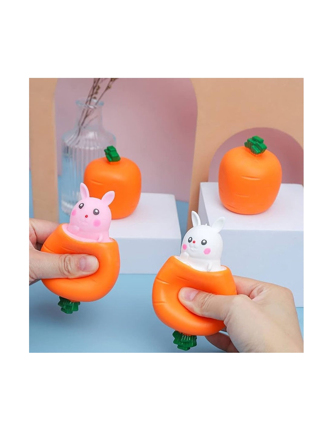 - Žaislai „2 morkos su kiškiais Carrot Rabbit Fidget Toys“: Tai suspaudžiami žaislai nuo nerimo, tinka vyresniems nei 3 metų žmonėms, gali veiksmingai sumažinti nuovargį, spaudimą ir pan. Galite stipriai suspausti, kad sumažintumėte įtampą ir stebėtumėte, kaip iššoka tvirtai sujungtas kiškis.