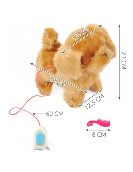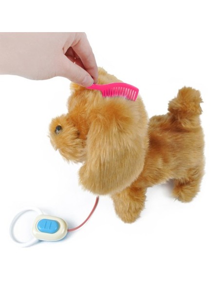 Šuniukas turi pavadėlyje sumontuotą nuotolinio valdymo pultą, kurio dėka galite valdyti žaislą.