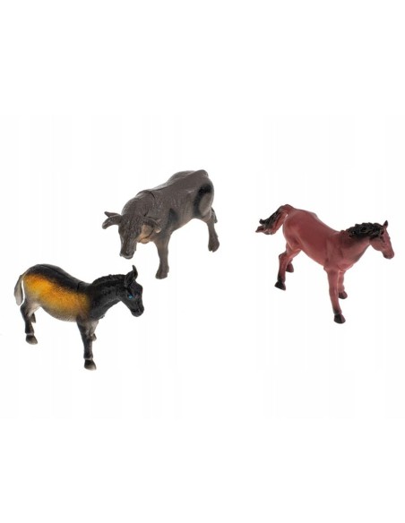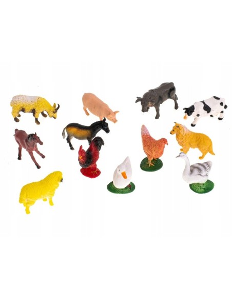 Rinkinyje rasite 12 naminių gyvūnų figūrėlių: gaidį, antį, žąsį, vištą, aviną, šunį, asilą, arklį, kiaulę, bulių, karvę ir ožką.
