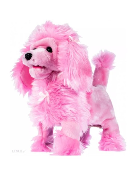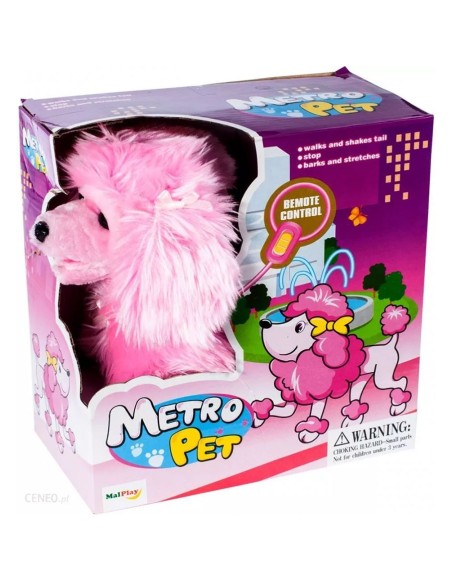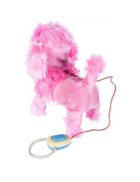 Šuniukas turi pavadėlyje sumontuotą nuotolinio valdymo pultą, kurio dėka galite valdyti žaislą.