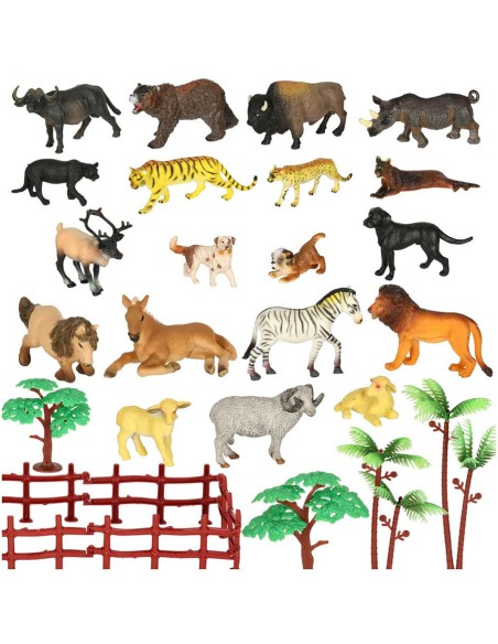 Su šiuo 31 dalies gyvūnų figūrėlių rinkiniu jūsų vaikas galės sukurti savo nuosavą safarį. Rinkinyje rasite 19 tikroviškai atrodančių gyvūnų, medžių, palmių ir tvorą, kuri padės sukurti įspūdingus peizažus. Žaidimas su šiais gyvūnais ne tik lavins vaizduotę ir kūrybiškumą, bet ir padės išmokti gyvūnų pavadinimus.