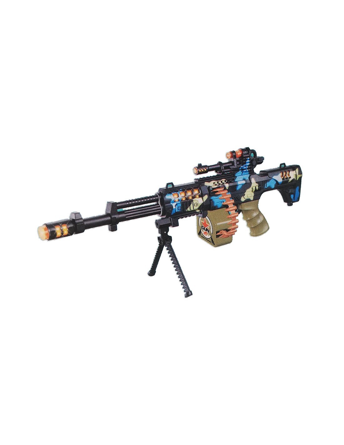 Šviečiantis, baterijomis valdomas ginklas leis berniukams žaisti karo žaidimus ir išbandyti savo jėgas judriuose žaidimuose.