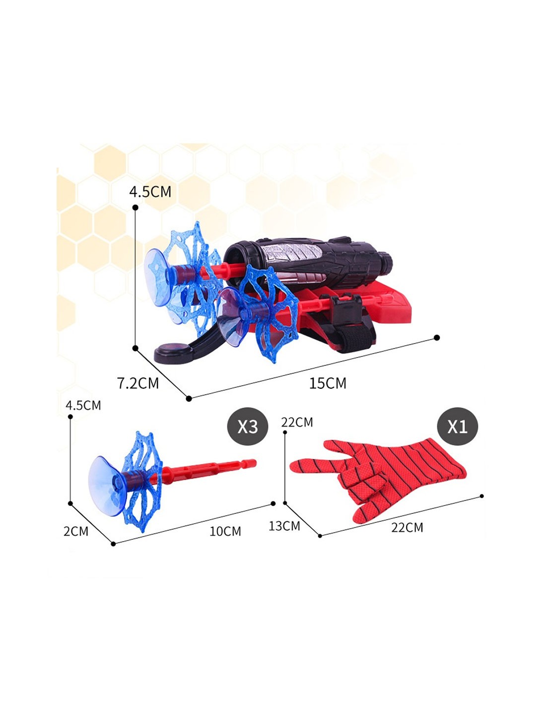 Superherojaus šaudymo rinkinis: universali pirštinė, paleidėjas ir strėlės. Lavina kūrybiškumą ir papildo bet kokį superherojaus kostiumą. Iššauk tinklą jau dabar!