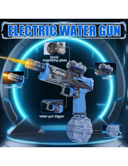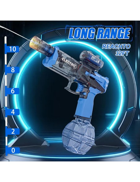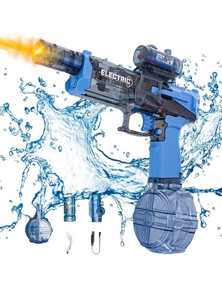 Elektrinis vandens pistoletas – LED efektai, didelis bakas, ilgas nuotolis! Puikios vasaros pramogos vaikams ir suaugusiems.