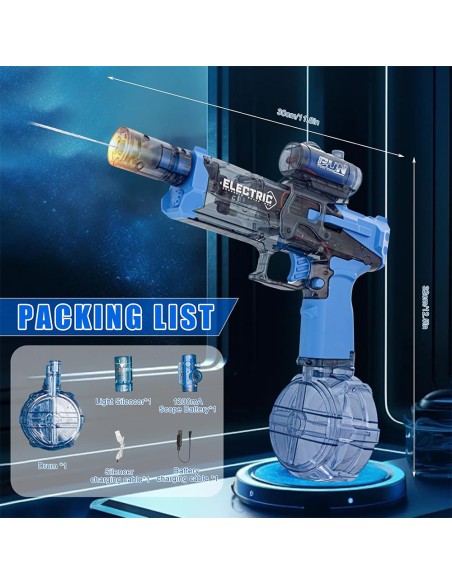 Pasiruoškite karščiausioms vandens kovoms su šiuo galingu elektriniu vandens pistoletu! Tikroviški LED šviesos efektai, didelis vandens bakas ir įspūdingas šūvio nuotolis pavers jūsų vasaros pramogas nepamirštamomis. Puikiai tinka tiek vaikams, tiek suaugusiems, šis vandens pistoletas suteiks valandų valandas smagaus žaidimo baseine, paplūdimyje ar sode.
