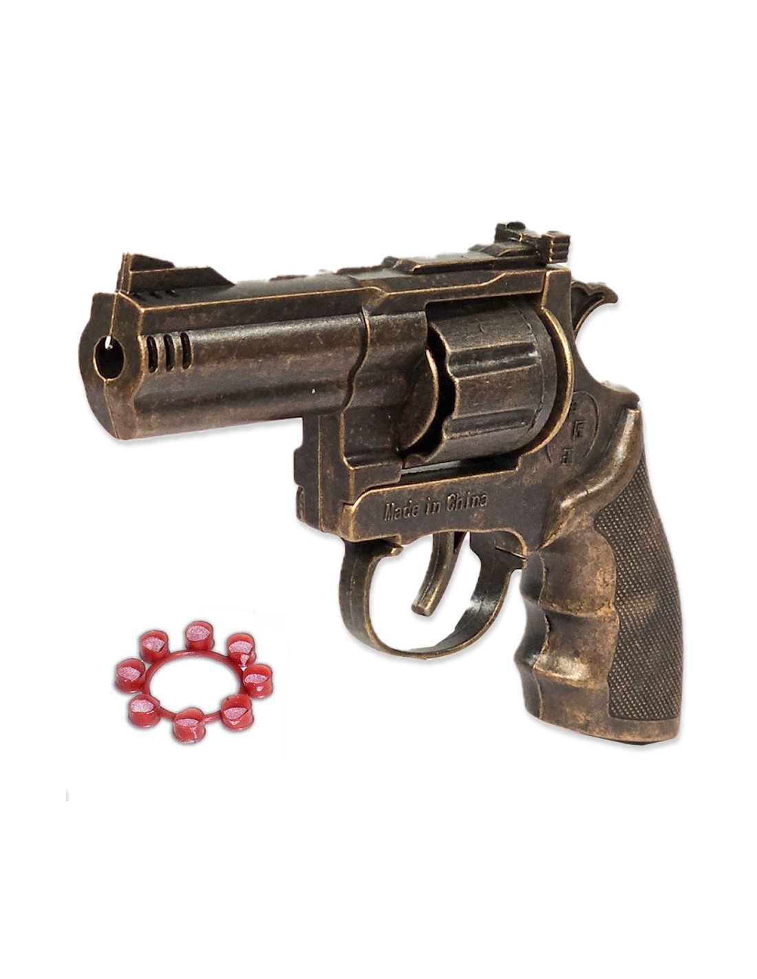 Žaislinis revolverio tipo pistoletas metalinis - šaudantis garsiniais pistonais. Šis žaislas leis pasijusti tarsi veiksmo filme! Tai smagus užsiėmimas vaikams. Galima organizuoti karo mūšius kiemo teritorijoje. Taip pat galima naudoti renginiams, šventėms, vestuvėms. Komplekte rasite šaudymo būgną: skirta garsiniams pistonams.