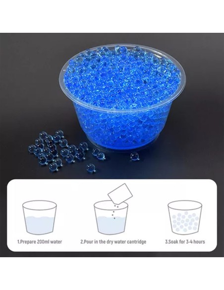 Lengvas paruošimas: Jums tereikia užpilti granules vandeniu, palaukti kelias valandas, kol jos išbrinks iki reikiamo dydžio, ir jūsų „municija“ paruošta!