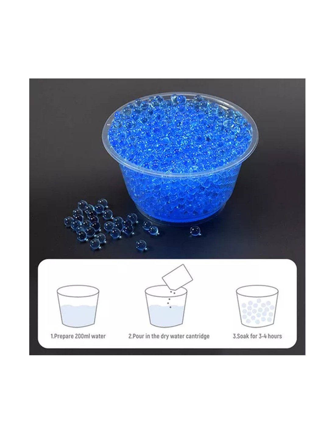 Hidrogelio granulės pistoletams mėlynos spalvos. Saugu, ekologiška ir paprasta paruošti – tiesiog užpilkite vandeniu! Tinka beveik visiems vandens pistoletams.