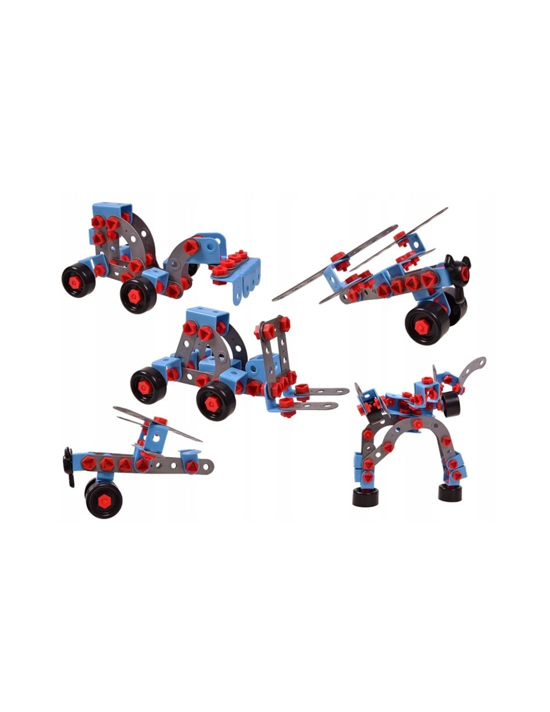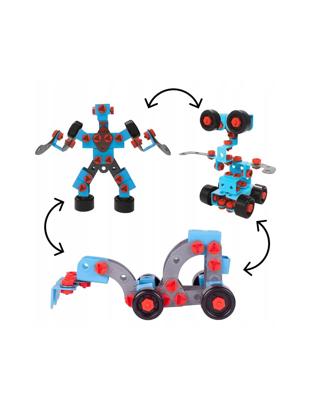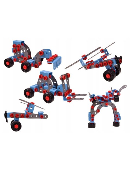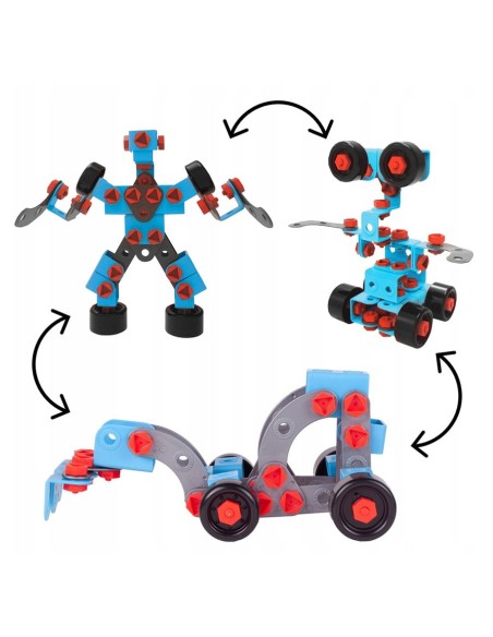 - Vaikai gali naudoti skirtingas konstruktoriaus dalys surenkant motociklą, robotą ar kitas figūras.