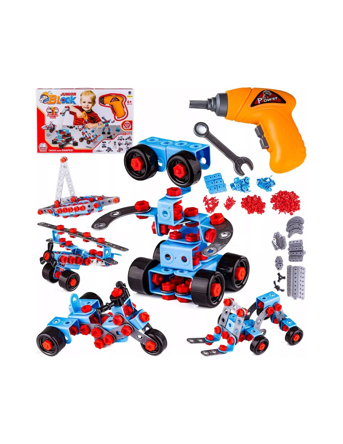 - 286 dalių konstruktorius su elektriniu atsuktuvu;