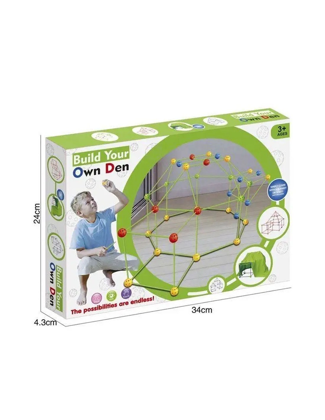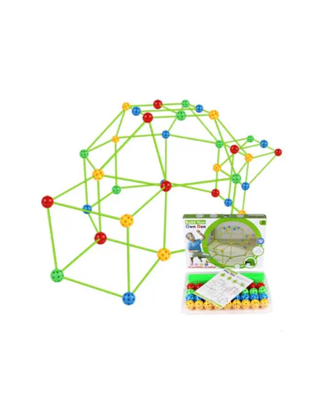 Paverskite vaiko kambarį tikru nuotykių ir vaizduotės centru! Šis unikalus „Build Your Own Den“ rinkinis leidžia mažiesiems architektams nuo nulio sukonstruoti bet kokį statinį – nuo slapto namelio iki kosminės raketos ar didingos pilies. Naudodami specialius stulpus kaip sijas ir kamuoliukus kaip jungtis, vaikai gali statyti, griauti ir kurti vėl, lavindami savo inžinerinius įgūdžius.