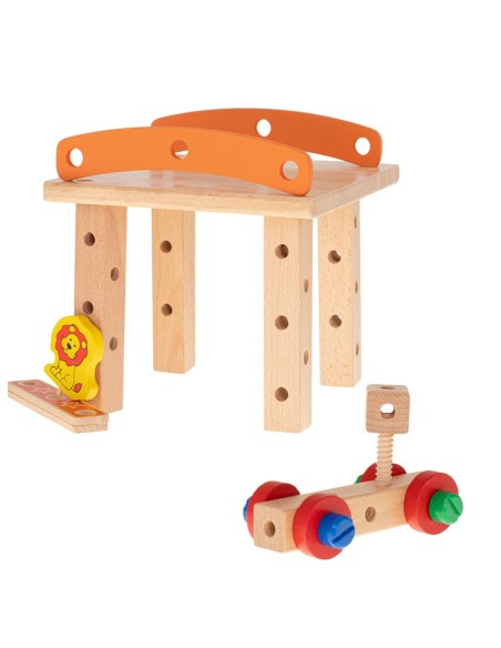 Šis spalvingas 49 dalių medinis konstruktorius leis vaikams ne tik pastatyti įvairias konstrukcijas, bet ir turėti funkcionalią kėdutę! Rinkinys lavina motoriką, analitinius įgūdžius, erdvinę vaizduotę ir susikaupimą. Su mediniu atsuktuvu ir veržliarakčiu mažieji meistrai galės konstruoti ir perdaryti be galo daug įdomių formų. Puikus žaislas "pasidaryk pats" entuziastams, suteiksiantis valandų kūrybinės pramogos!