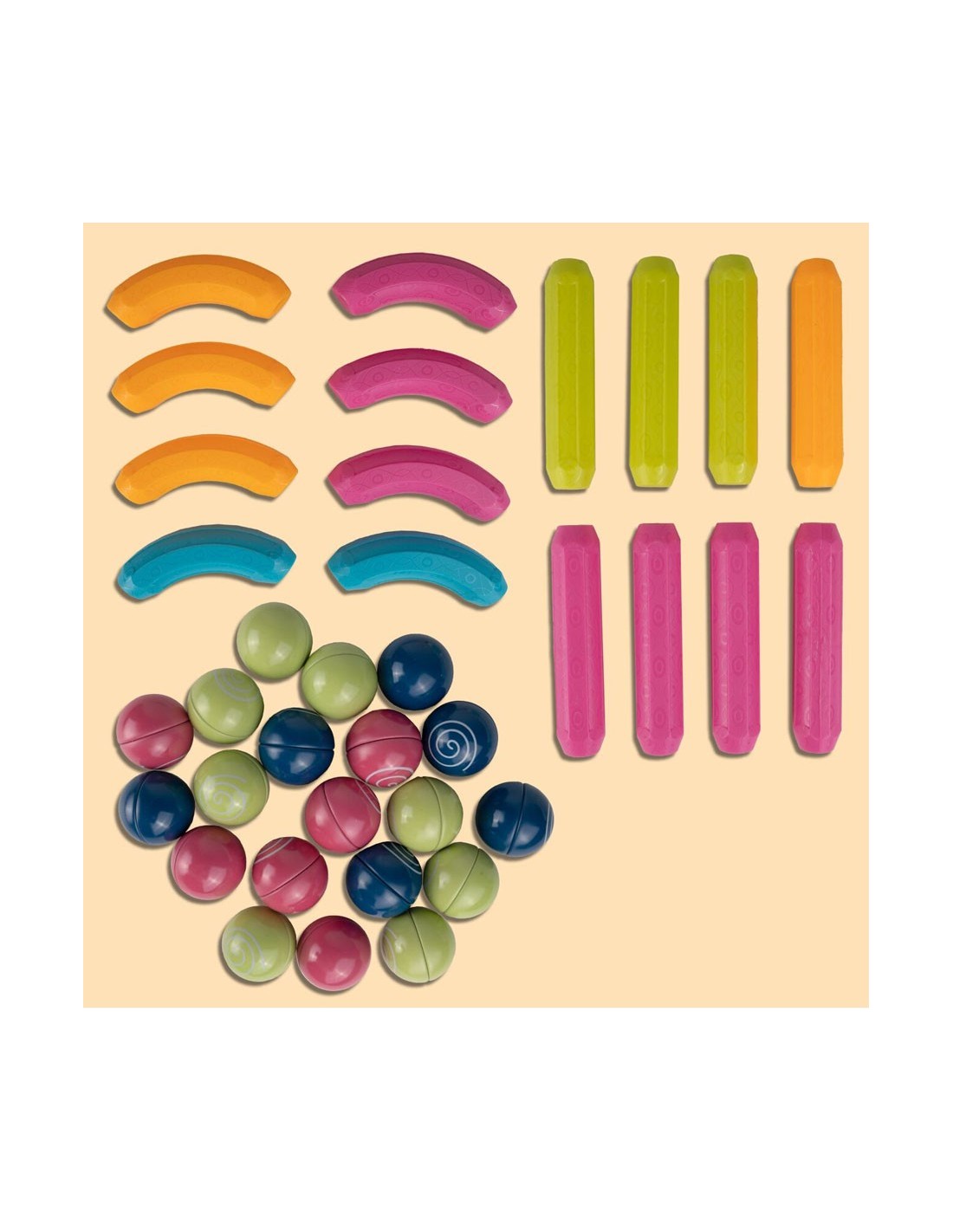 84 spalvotų, stambių magnetinių kaladėlių rinkinys. Rinkinį sudaro: