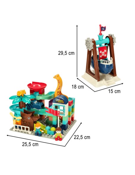 Leiskite savo vaikui pasinerti į kūrybos ir inžinerijos pasaulį su šiuo nuostabiu konstrukcinių kaladėlių rinkiniu! Su 121 detale, įskaitant spalvingas kaladėles, gyvūnų figūrėles ir uostą su laivu, vaikai galės konstruoti įspūdingas kamuoliukų trasas ir stebėti, kaip kamuoliukai smagiai rieda jų sukurtu keliu. Tai ne tik smagus, bet ir lavinantis žaislas, skatinantis vaizduotę, loginį mąstymą ir smulkiąją motoriką.