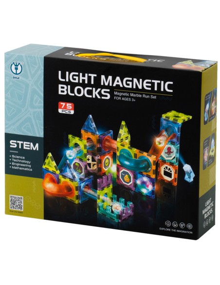 Pasinerkite į kūrybos ir inžinerijos pasaulį su šiuo fantastišku magnetinių blokelių rinkiniu! Su 75 detalėmis, įskaitant spalvingus blokus, tunelius, čiuožyklas, šviečiančius elementus ir kamuoliukus, vaikai galės konstruoti įspūdingas, šviečiančias kamuoliukų trasas ir stebėti, kaip kamuoliukai smagiai rieda jų sukurtu keliu. Tai ne tik smagus, bet ir lavinantis žaislas, skatinantis vaizduotę, loginį mąstymą, smulkiąją motoriką ir erdvinį suvokimą.