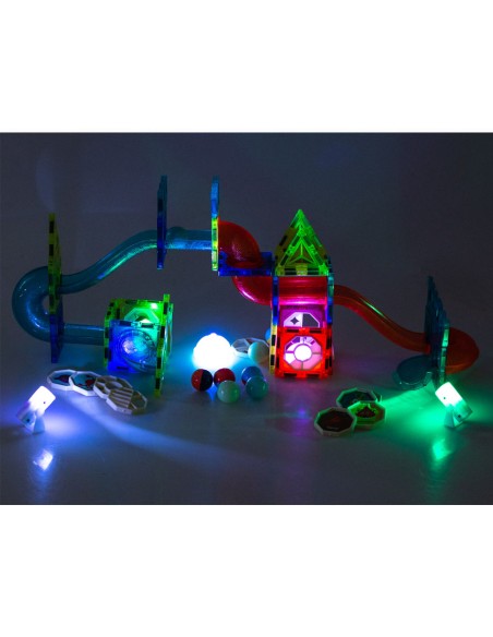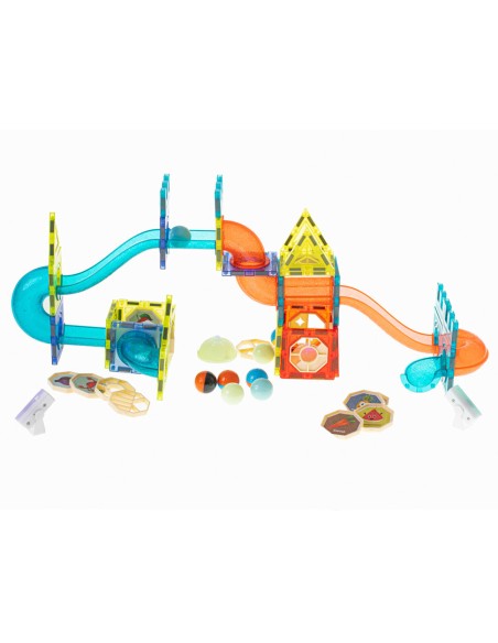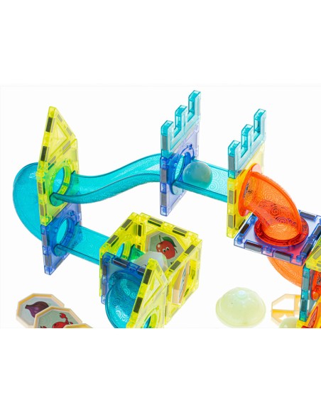 Sukurk šviečiančias kamuoliukų trasas su magnetiniais blokeliais! Lavina kūrybiškumą, motoriką ir loginį mąstymą. Puiki dovana vaikams nuo 3 metų!