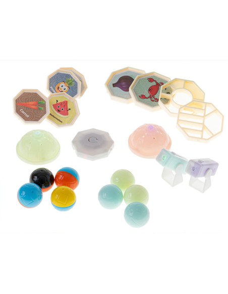 - Vizualinis suvokimas ir stebėjimo įgūdžiai: Stebint, kaip šviečiantys kamuoliukai rieda trasa, lavėja vizualinis suvokimas ir gebėjimas stebėti judančius objektus.