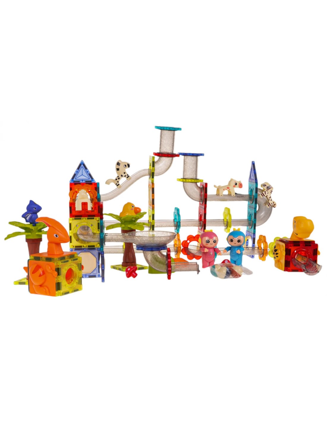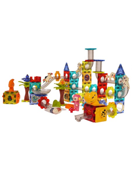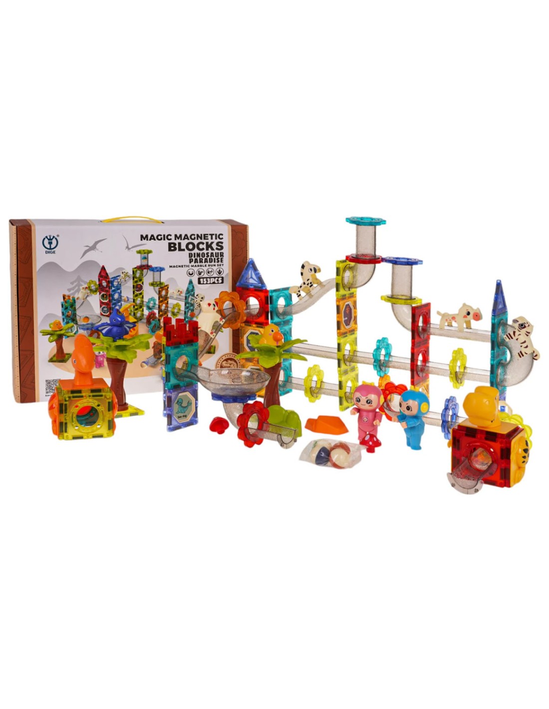 Šis spalvingas, zoologijos sodo tematikos magnetinių kaladėlių rinkinys yra idealus įrankis vaiko kūrybiškumo ir loginio mąstymo lavinimui. Rinkinį sudaro net 153 detalės, leidžiančios sukonstruoti bet kokios konfigūracijos marmurinį bėgimo taką ir sukurti savo gyvūnų pasaulį. Magnetai labai gerai laikosi kartu, užtikrindami konstrukcijos stabilumą, o tai yra puiki STEM pramoga.