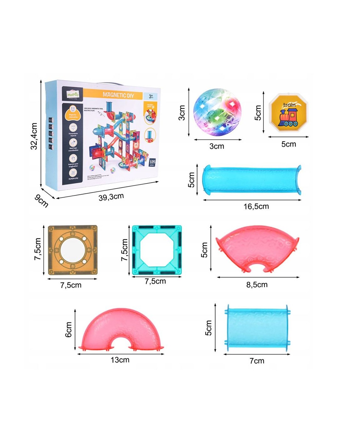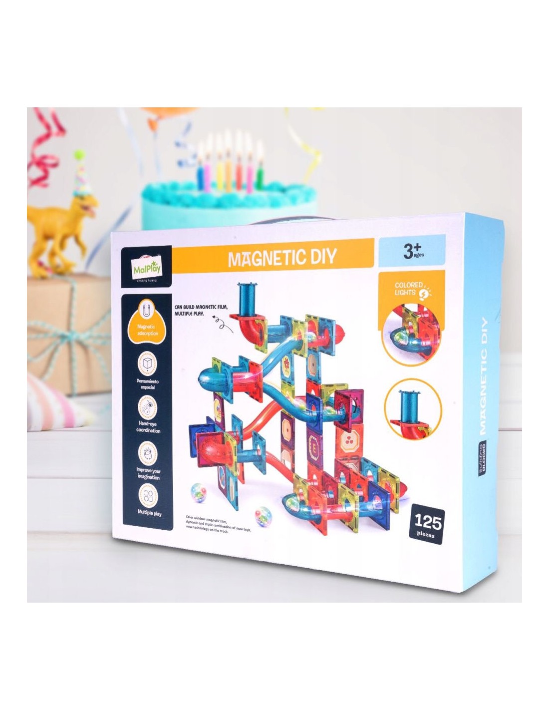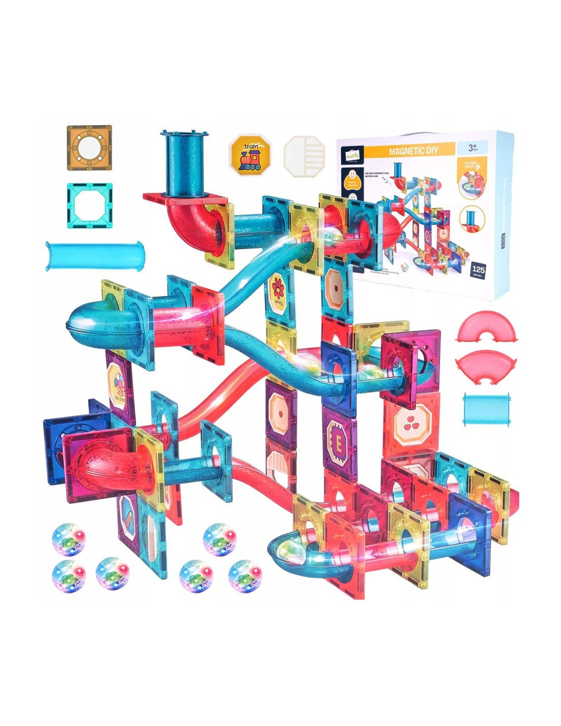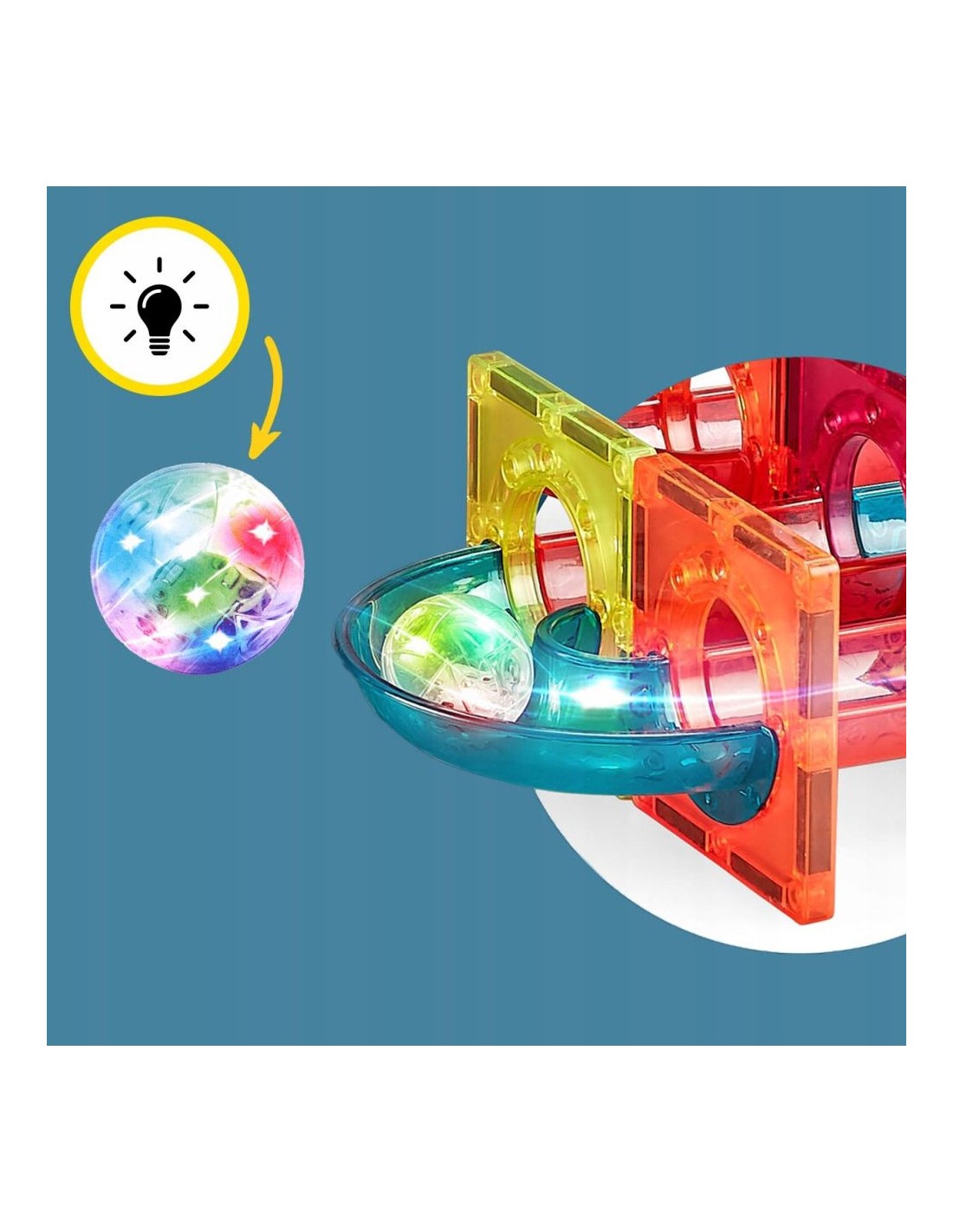 Leiskite savo vaikui tapti mažuoju architektu ir šviesų dailininku su įspūdingu 125 elementų magnetiniu rinkiniu. Tai ne tik žaislas, o kūrybinė erdvė, kurioje fizikos dėsniai susitinka su vaizduote. Šis konstruktorius leidžia statyti sudėtingas 3D konstrukcijas, spalvingas trasas ir tunelius, o permatomos detalės bei šviečiantys LED kamuoliukai kiekvieną statinį paverčia dinamiška šviesos instaliacija.