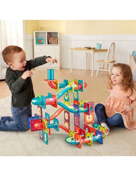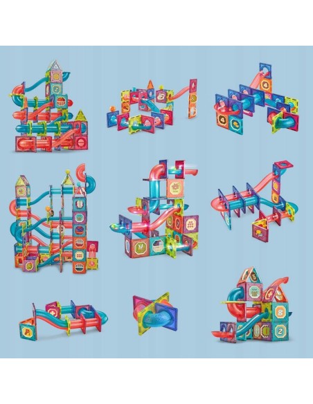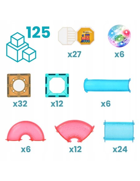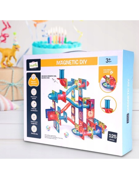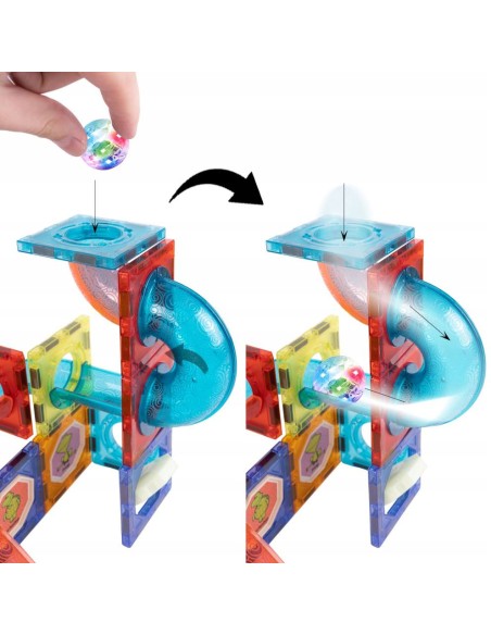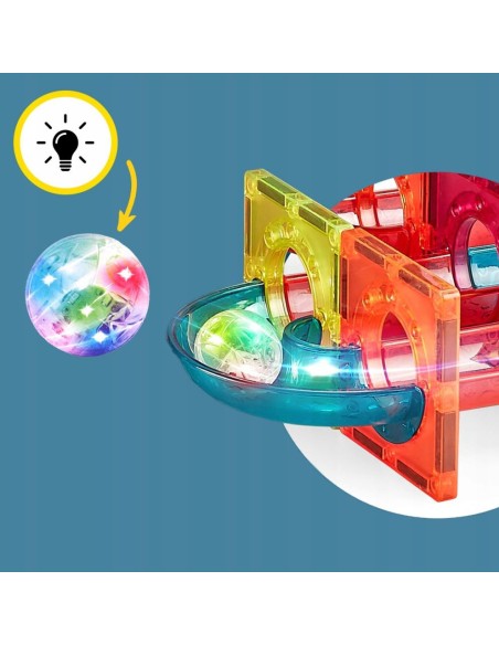 Magnetinis konstruktorius Magic Magnetic Blocks – 125 dalių šviečianti kamuoliukų tunelių trasa