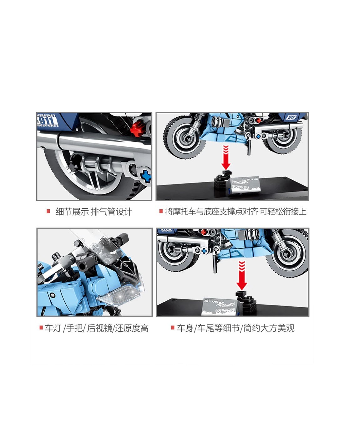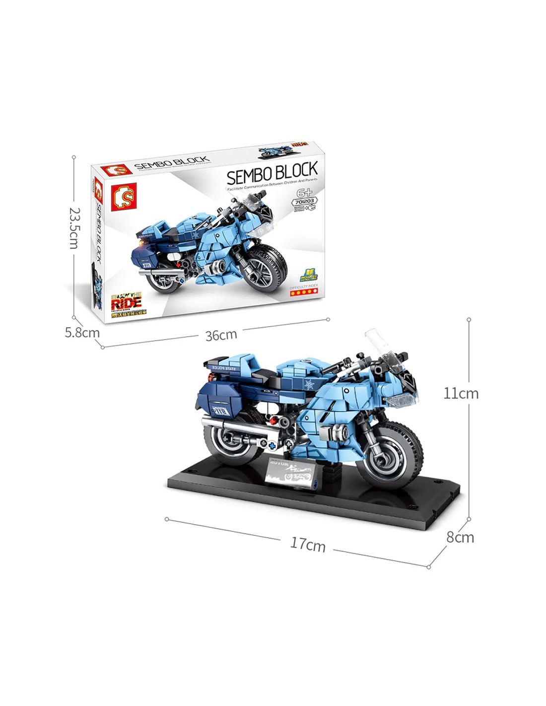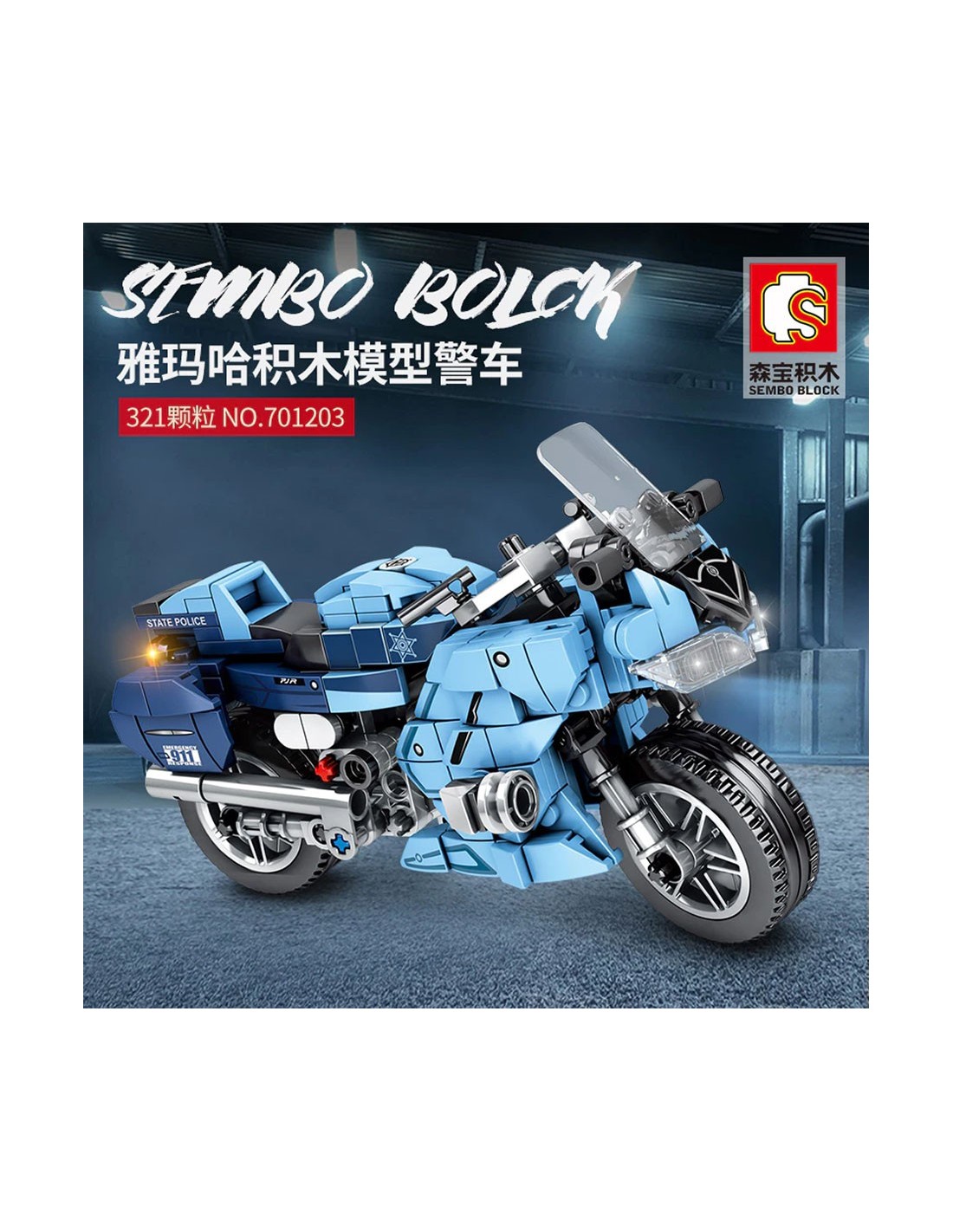 SEMBO 701203 – techninis policijos motociklo modelis iš 321 dalies. Lavina intelektą ir motoriką. Skirta vaikams nuo 6-8 metų. Surink savo Yamaha Police jau šiandien!