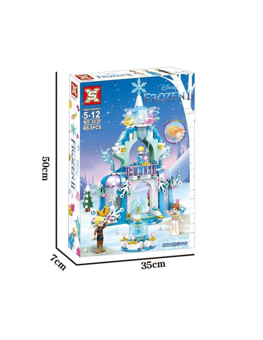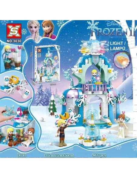 Konstruktorius įkvėptas garsaus filmuko „Frozen“. Konstruojamose rūmuose ir baltame bokšte patogiai įsikūrė mergaičių mėgstami personažai Elsa ir Anna. Antrame aukšte yra erdvus balkonas, į kurį seserys kartu išeina pasigrožėti ledo šalimi. Vakare įjungiami spalvoti žibintai. Rūmų dekore taikiai sugyvena spalvingos gėlės ir šalti varvekliai. O su sniego draugais Besmegeniais bus itin smagu dūkti, čiuožti su rogėmis nuo kalnų ar mėtytis sniego gniūžtėmis. 6-12 metų mergaičių vaizduotė bus ilgai prikaustyta, nes taip magiška jaustis maloniomis gražiomis princesėmis. Konstruktorius lavina smulkiąją motoriką, atkaklumą, kūrybinį mąstymą ir atmintį.