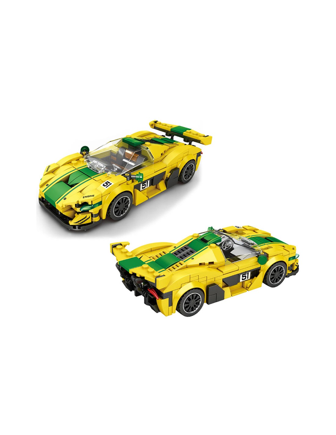 Šis geltonas supersportinis automobilis su žalia juostele – puikus pasirinkimas modernių superautomobilių ir pažangių konstruktorių rinkinių gerbėjams. Įkvėptas P1 GTR stiliaus lenktyninių ikonų, šis modelis įkūnija agresyvią galią, aerodinamiką ir tikrą lenktynių trasos dvasią.