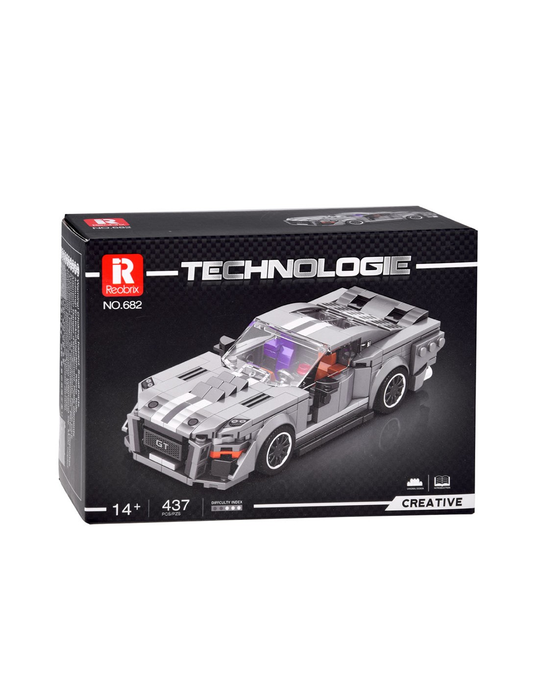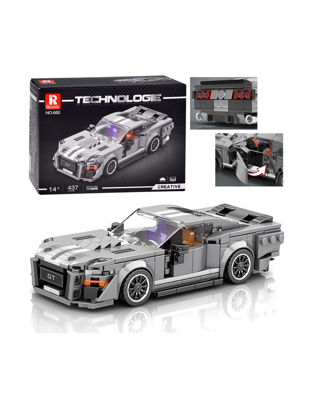 Technic Blokeliai: Pilkas GT Automobilis su Dvigubomis Juostelėmis (437 Dalys)