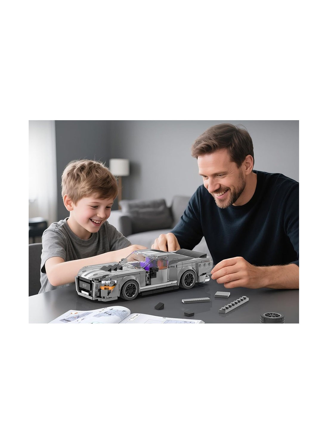 Technic Blokeliai: Pilkas GT Muscle Car su Dvigubomis Juostelėmis – 437 Detalių Klasikinis Modelis.