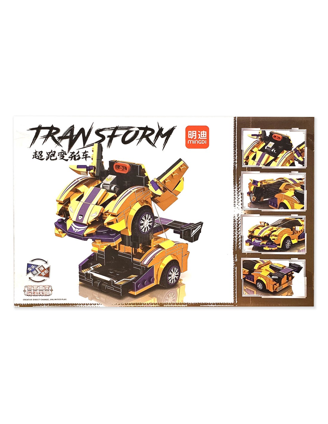 Instrukcija: Tėtis parodo transformacijos seką su „Mingdi Racing Mecha“. Paskui vaikas turi atkartoti veiksmus ir transformuoti mašiną į robotą, o tada atgal.