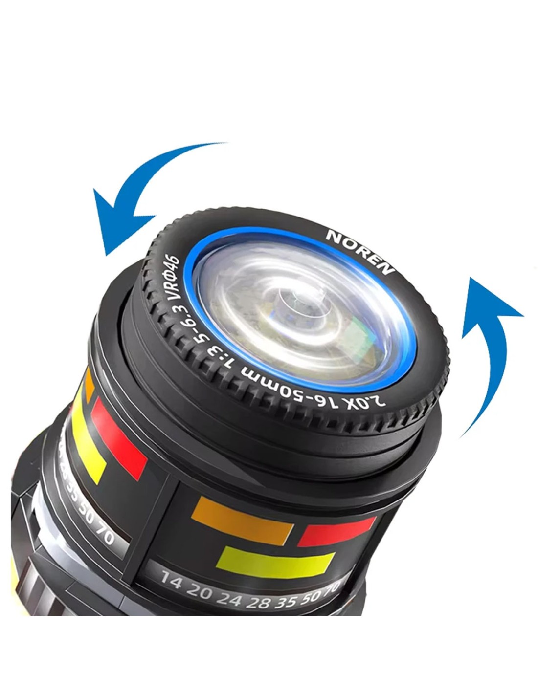 Interaktyvus objektyvas: Modelis pasižymi judančiu objektyvu, kuris suteikia konstravimui tikroviškumo ir leidžia pasijusti tikru fotografu.
