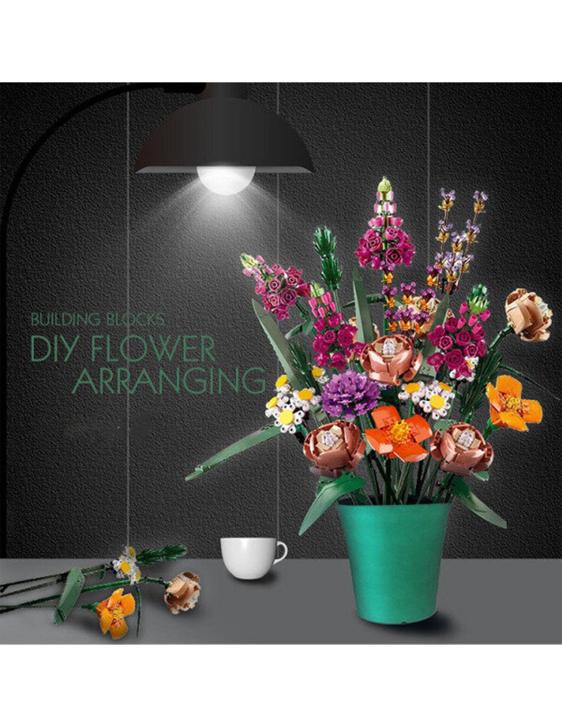 Elegantiškas gėlių konstravimo rinkinys: rožės, aguonos ir ramunės iš 756 detalių. Tvarus plastikas, visiškas suderinamumas. Tobula interjero detalė ir dovana.