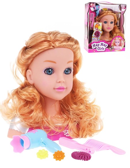 Šviesi plaukų modeliavimo galva su priedais – puiki dovana mažoms stilistėms! Lavina kūrybiškumą ir motoriką.