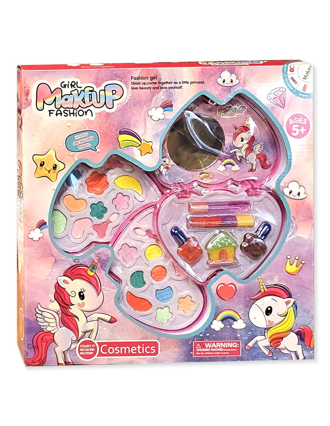 25 dalių „Unicorn“ makiažo rinkinys – spalvinga širdelė su veidrodėliu