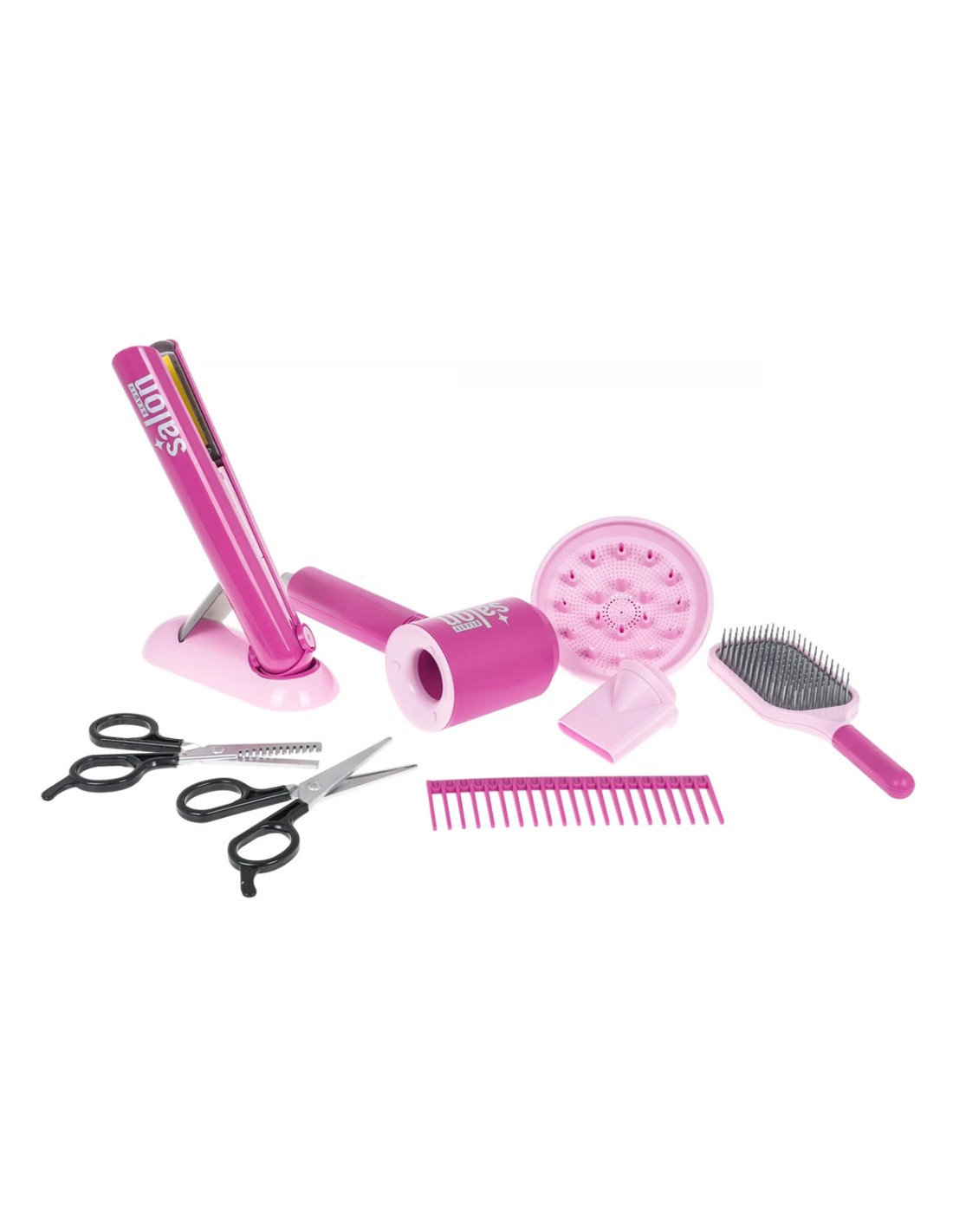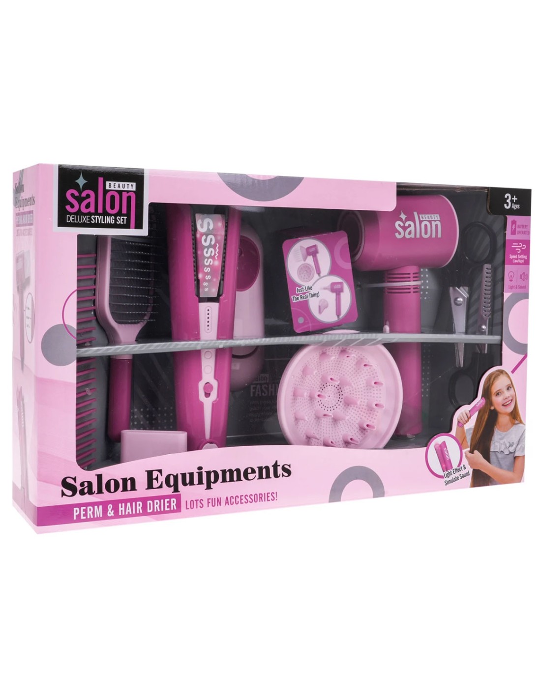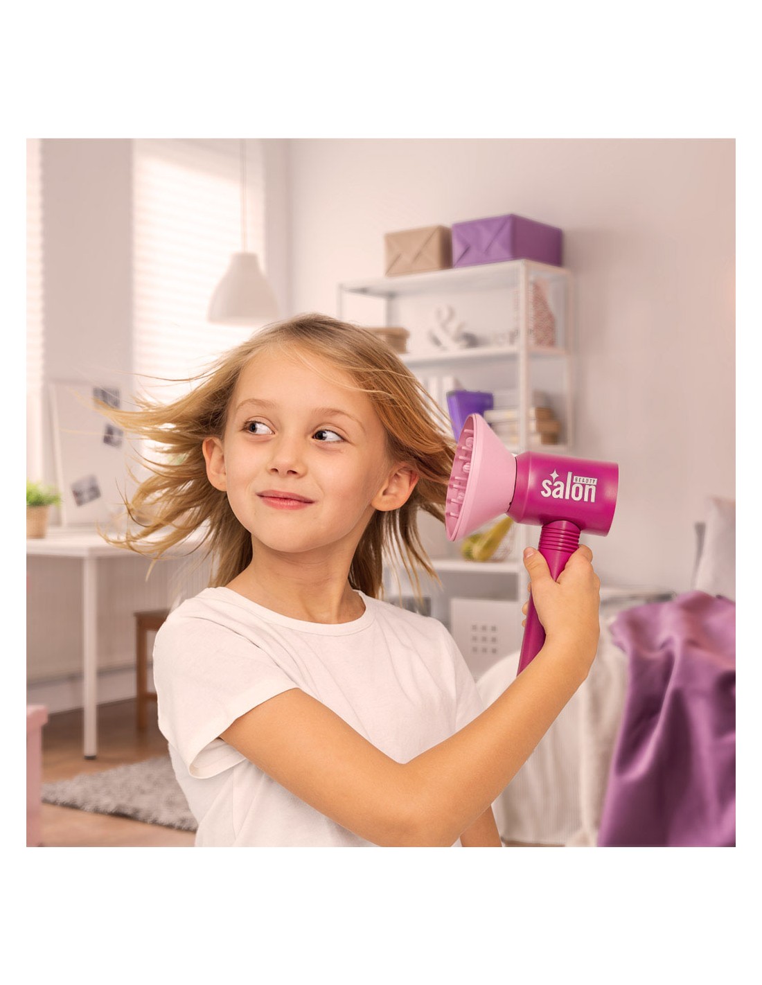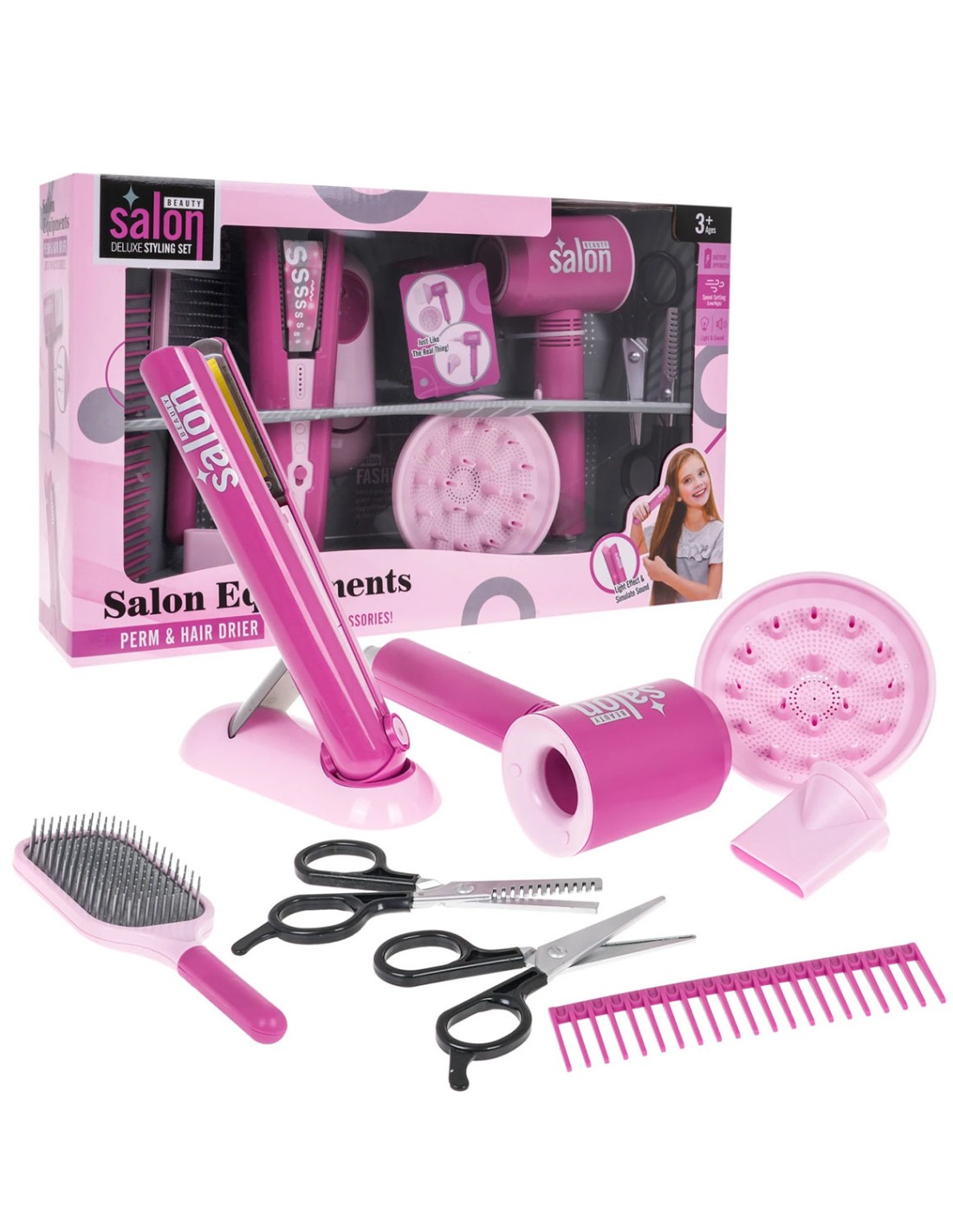 Atidarykite geriausią grožio saloną savo namuose! Šis „Glamour Studio“ rinkinis leidžia vaikams pasijusti tikrais plaukų stilistais. Interaktyvūs įrankiai ne tik atrodo kaip tikri, bet ir veikia itin tikroviškai: džiovintuvas pučia orą, o tiesintuvas šviečia bei skleidžia tiesinimo garsus, suteikdami žaidimui nepamirštamų emocijų!