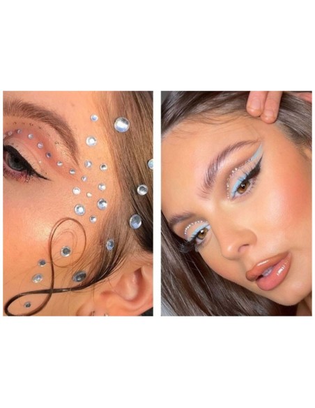 Puikiai tinka kaip įspūdingas makiažo užbaigimas ypatingai progai. Sidabriniai lipnūs kristalai, kalnų krištolas išbaigtas specialiu pjūviu, kurio dėka kristalai žaižaruoja aplinkos spalvomis.