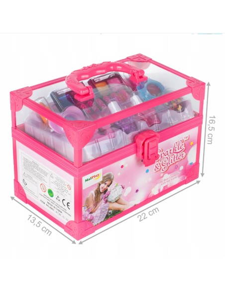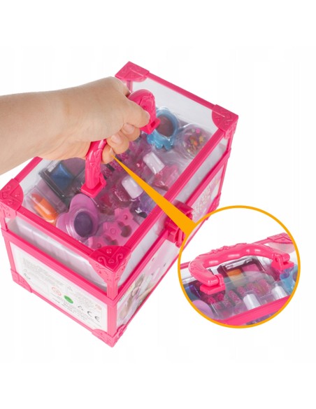 Leiskite savo mažajai mados kūrėjai pasijusti tikra stiliaus eksperte! Šis nagų ir makiažo rinkinis yra supakuotas į nuostabų, kompaktišką lagaminėlį-dėklą, kuris slepia viską, ko reikia svajonių įvaizdžiui sukurti. Tai ne tik žaislas, bet ir puiki priemonė lavinti estetinį suvokimą, smulkiąją motoriką bei kūrybinę vaizduotę.