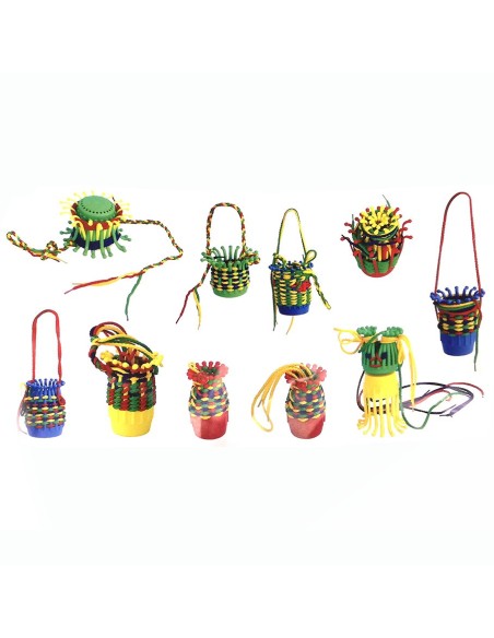 Rinkinio tikslas pinti spalvotus raištelius tarp strypų plastikiniuose „krepšeliuose“. Tai lavina vaizduotę ir yra puikus rankų miklumo lavinimas.