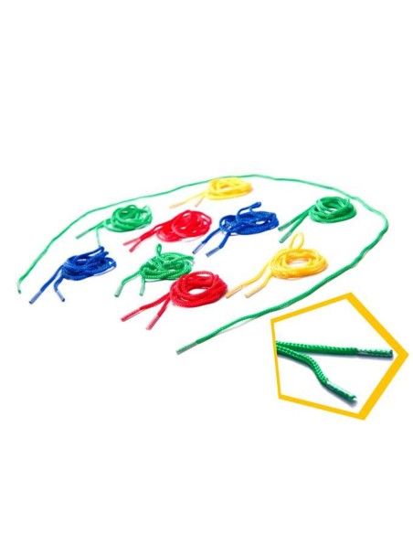Mokymasis rišti: Rinkinyje esantys 10 skirtingų spalvų raištelių yra puiki priemonė lavinti batų raištelių rišimo įgūdžius.