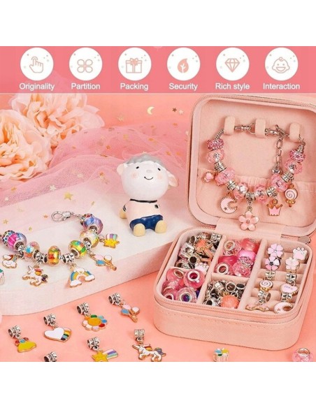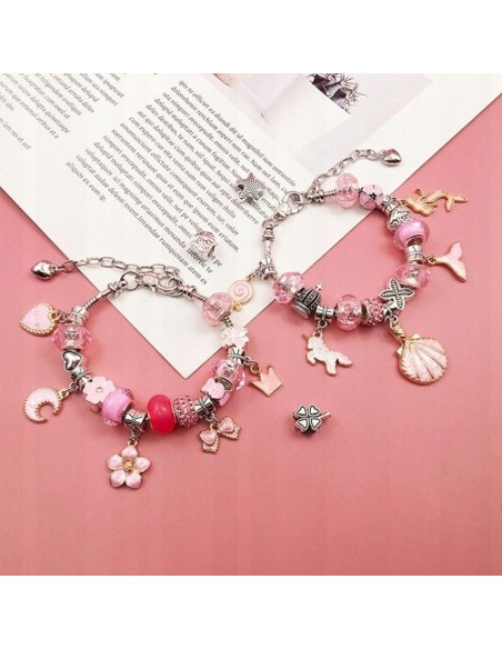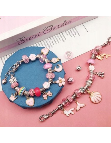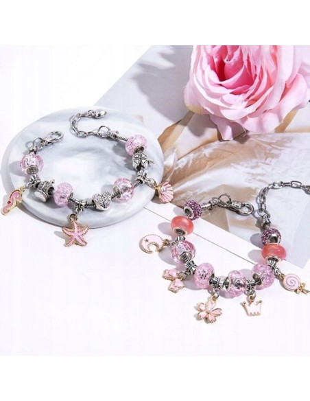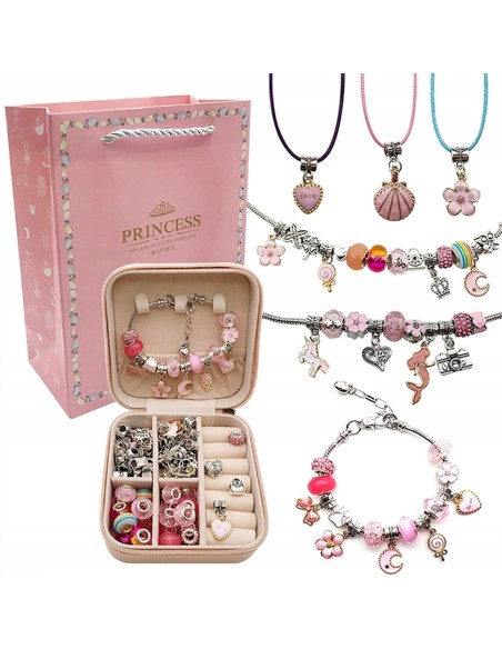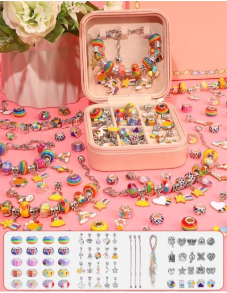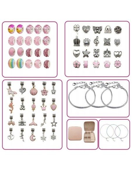 DIDELIS RINKINYS - Leis Jūsų vaikui sukurti pasakiškai spalvingas įvairių formų ir įvairiausių motyvų apyrankes. Į komplektą Prisegtos 4 apyrankės, ant kurių dedate karoliukus ir pakabukus.