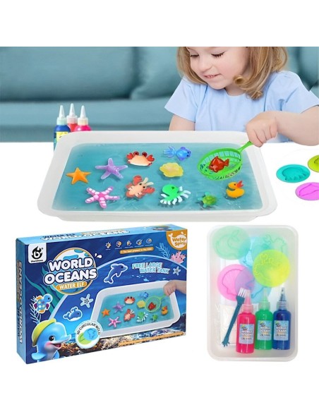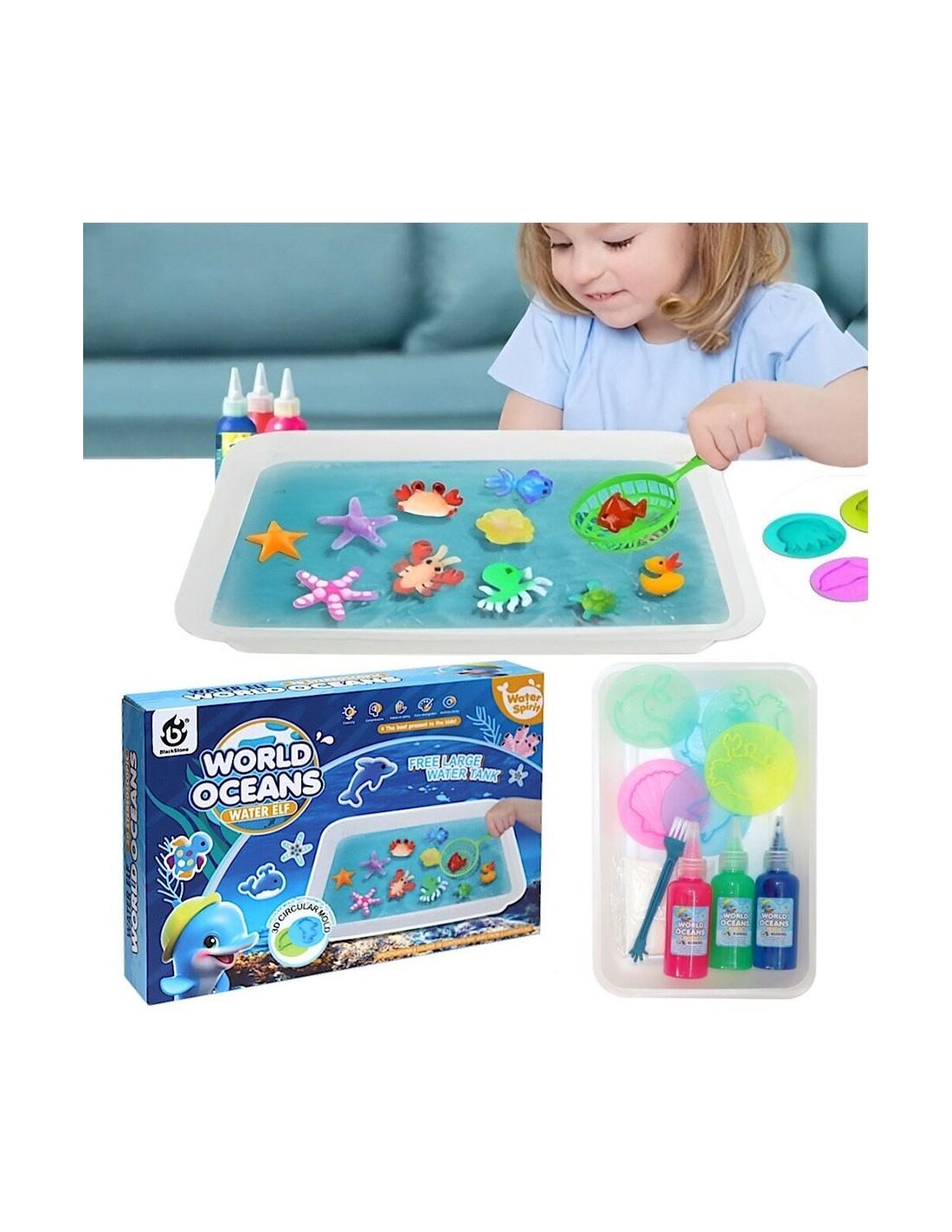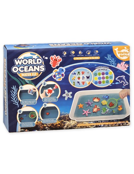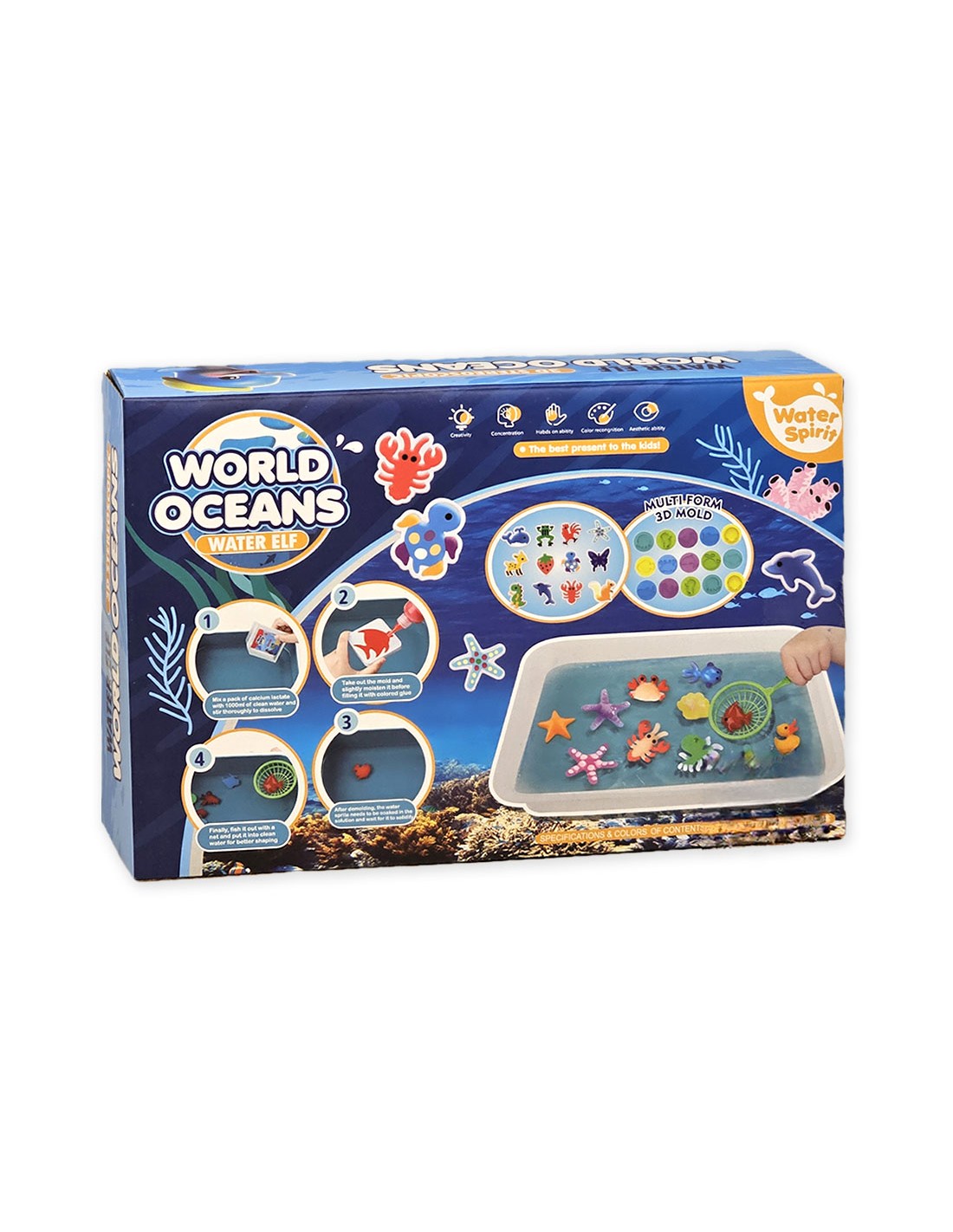 Tai yra kūrybinis žaidimas „World Oceans: pasigamink savo jūros gyvūnus“, skirtas leisti vaikams sukurti unikalias 3D jūros būtybes naudojant specialius gelius ir kalcio laktato tirpalą. Rinkinys puikiai tinka lavinti kūrybiškumą, rankų ir akių koordinaciją, spalvų atpažinimą ir estetinį jausmą.
