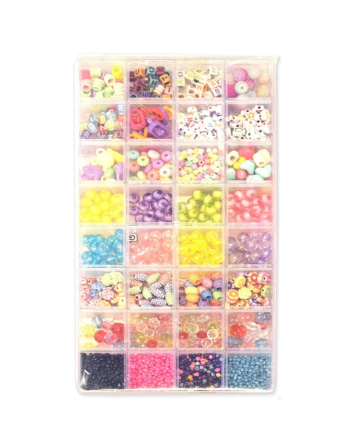 Ypatinga detalių gausa: Net 32 skyreliai [pagal nuotrauką], pripildyti įvairiausių spalvų, formų ir dydžių karoliukų. Čia rasite visko: nuo blizgių perliukų iki nuotaikingų žvaigždučių ir gėlyčių.